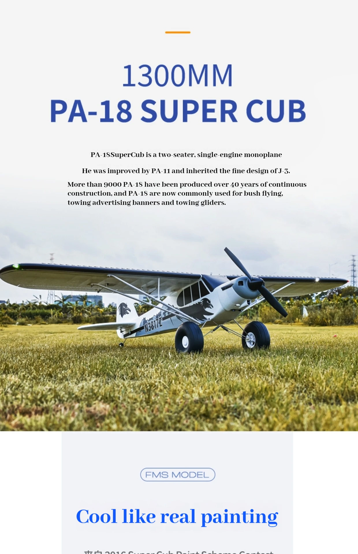 Fms Aircraft Model 1300mm Pa-18 Fixed Wing Rc Remote Control Training Machine Foam Aircraft Cross-Country Aircraft Model