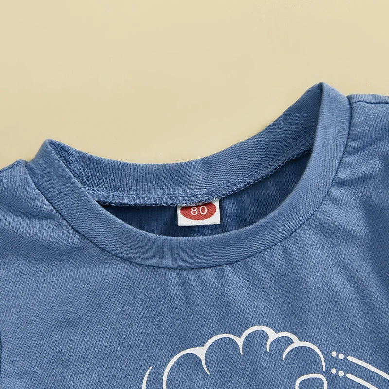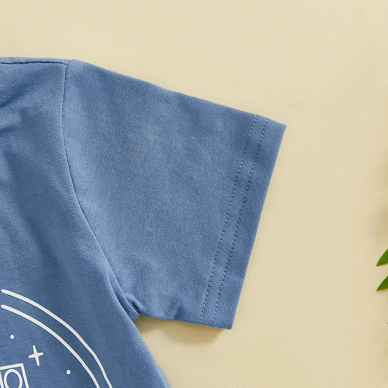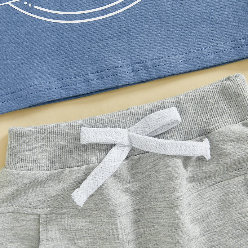 FOCUSNORM 0-4Y Toddler Kids Boys Summer Casual Clothes Sets Cartoon Letter Print Short Sleeve T-Shirt Elastic Solid Shorts