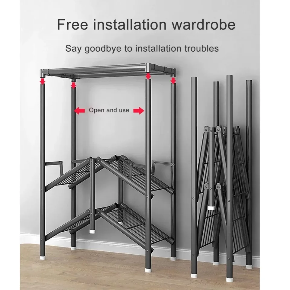 Foldable Installation-Free Wardrobe Heavy Duty Portable Closet With Cover Clothes Racks Simple Garment Rack For Hanging Clothes