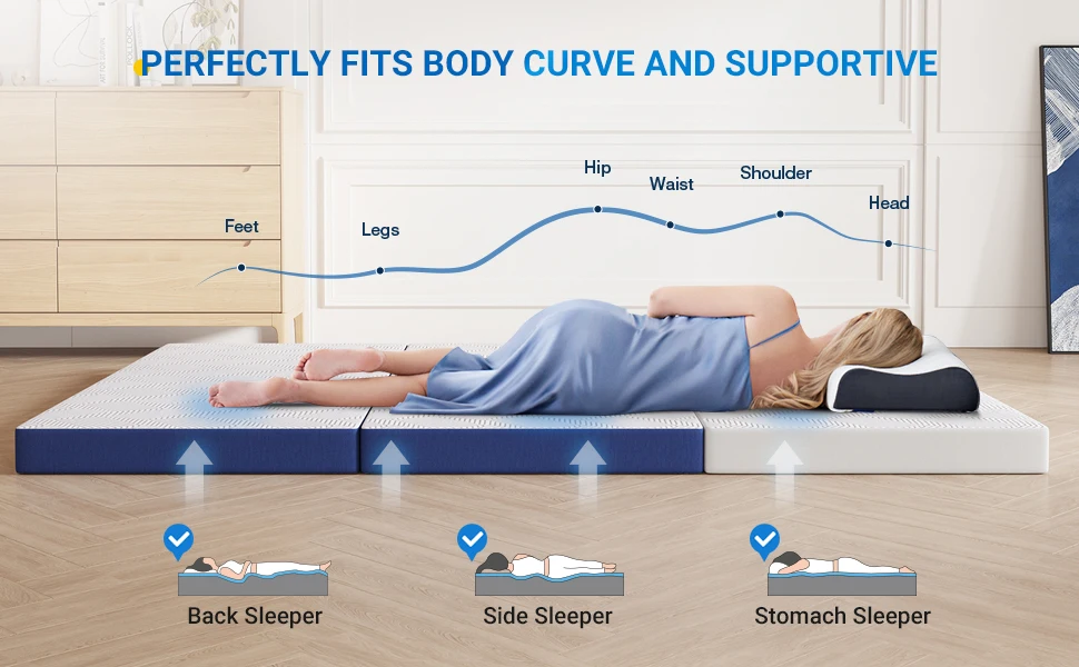The top of the mattress is breathable and comfortable, and can be placed on the bed to increase softness, or directly used as a mattress. It is also easy to store, whether you are at home, outdoors, or camping, you can relax and sleep comfortably.