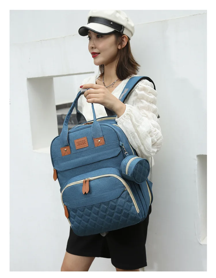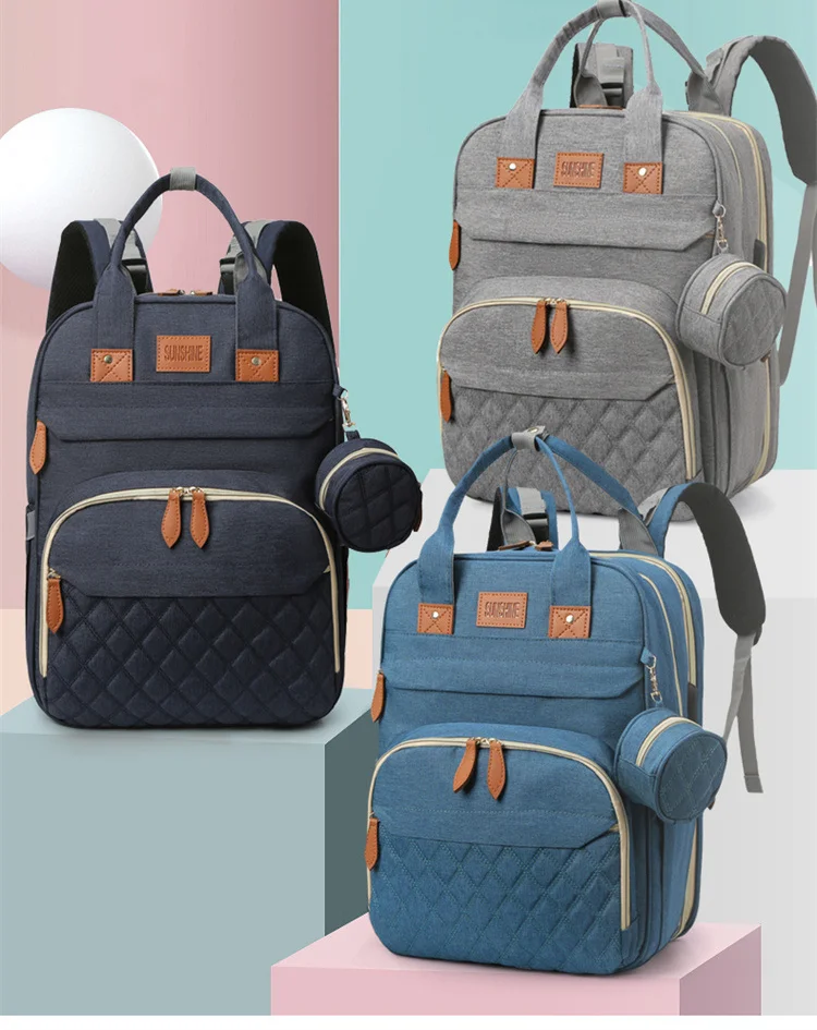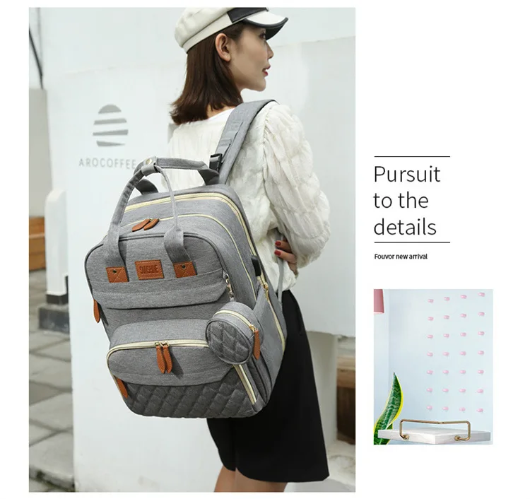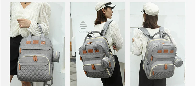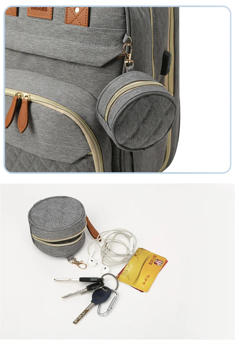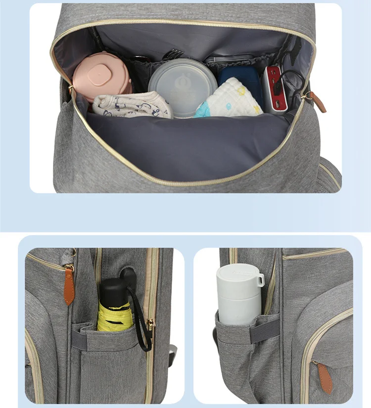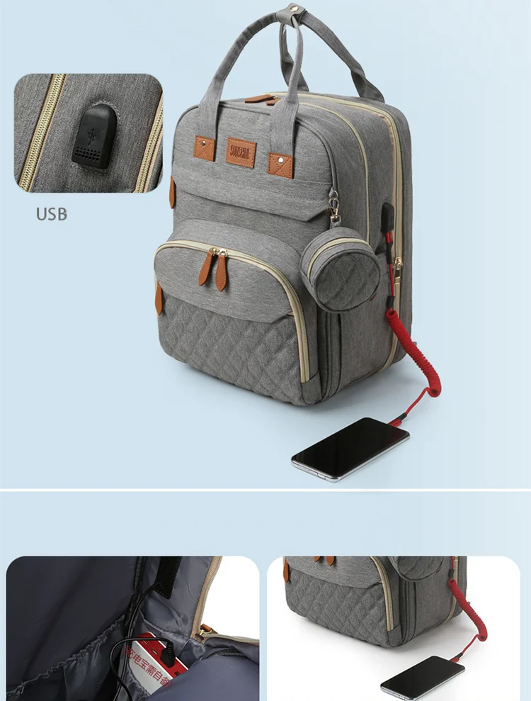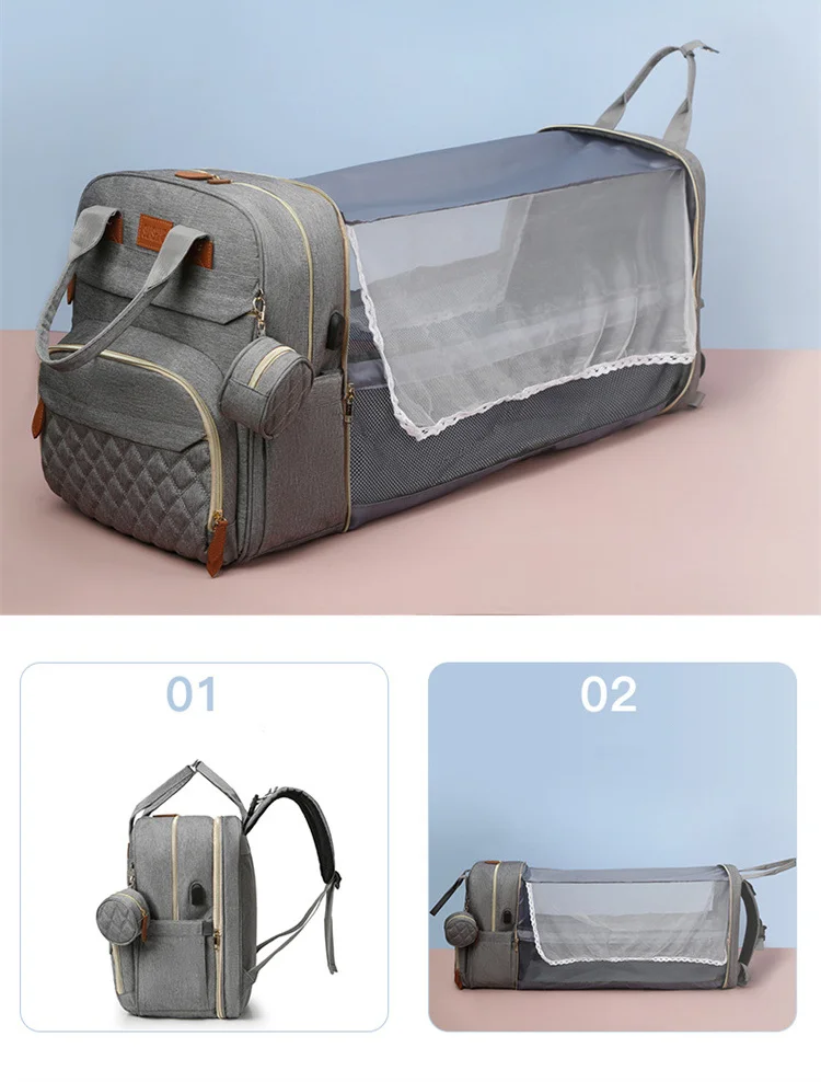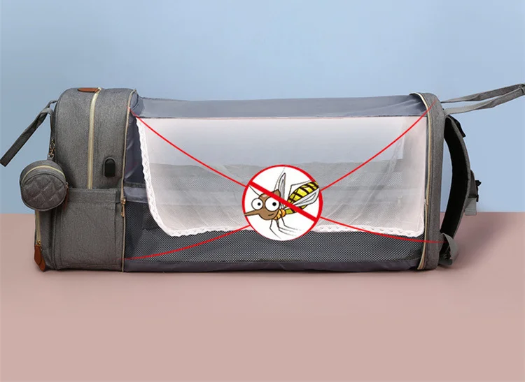 Folding Mommy Bag with USB Port and Shade Cloth Mosquito Net Portable Folding Crib Bed Multi Function Pee Pad Mother Baby Bag