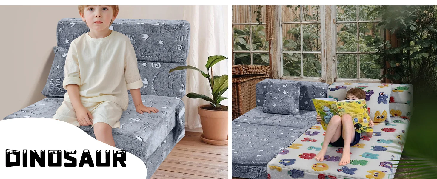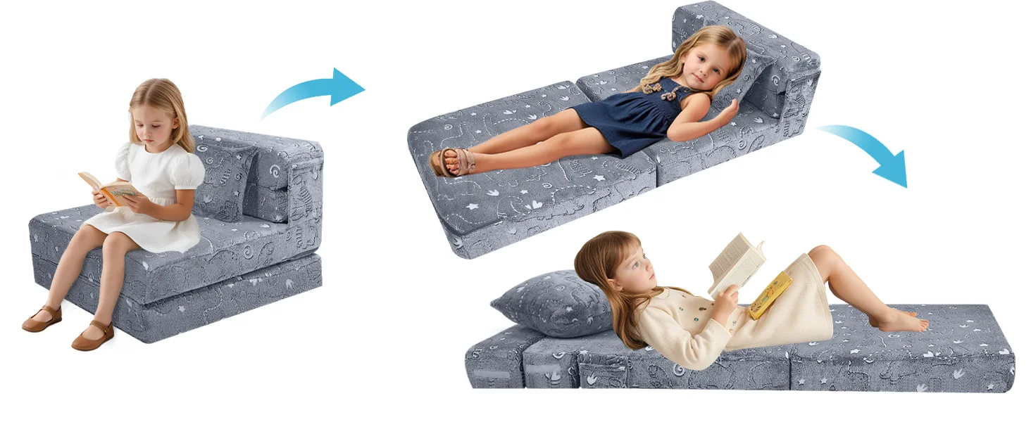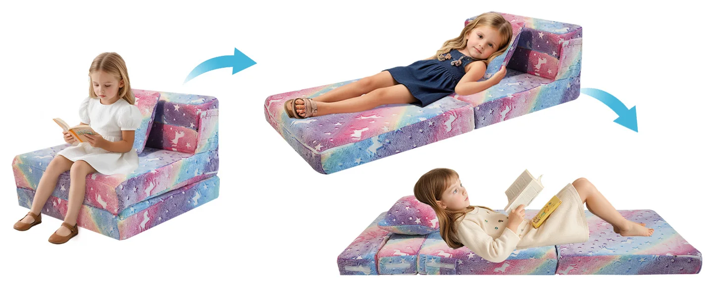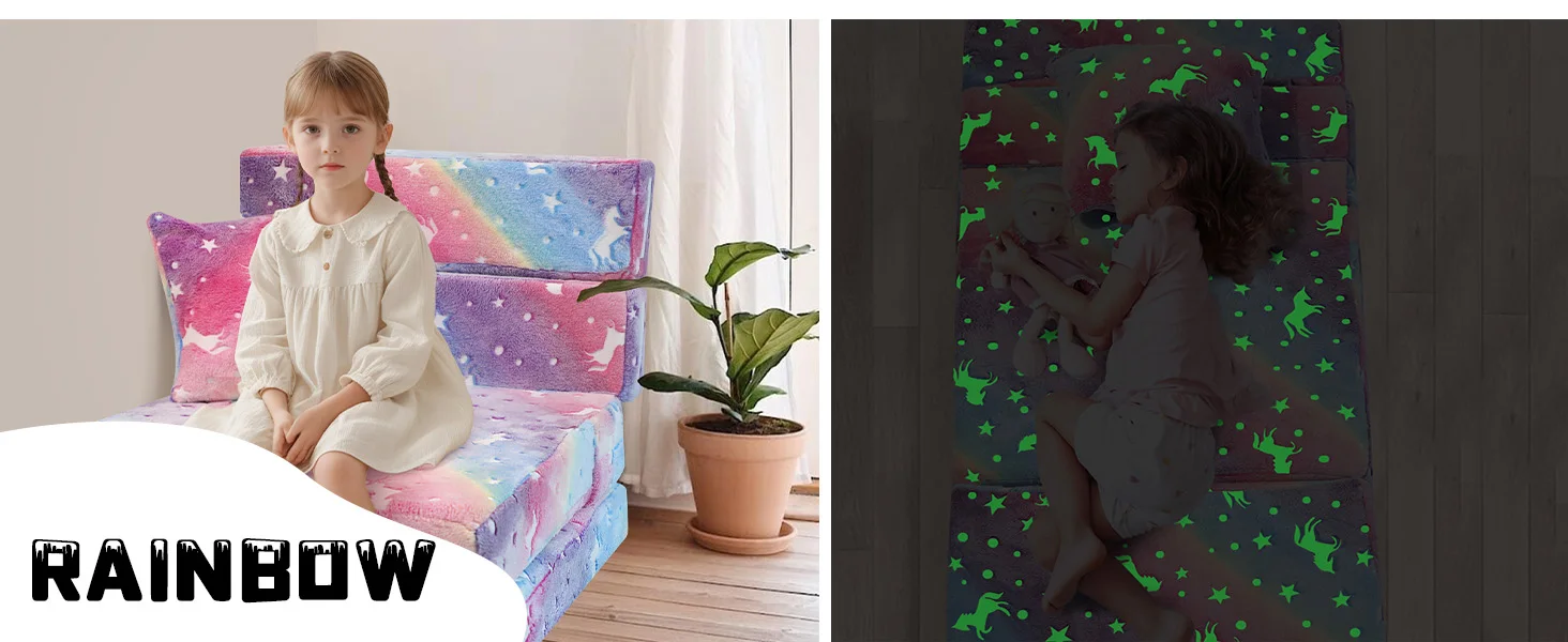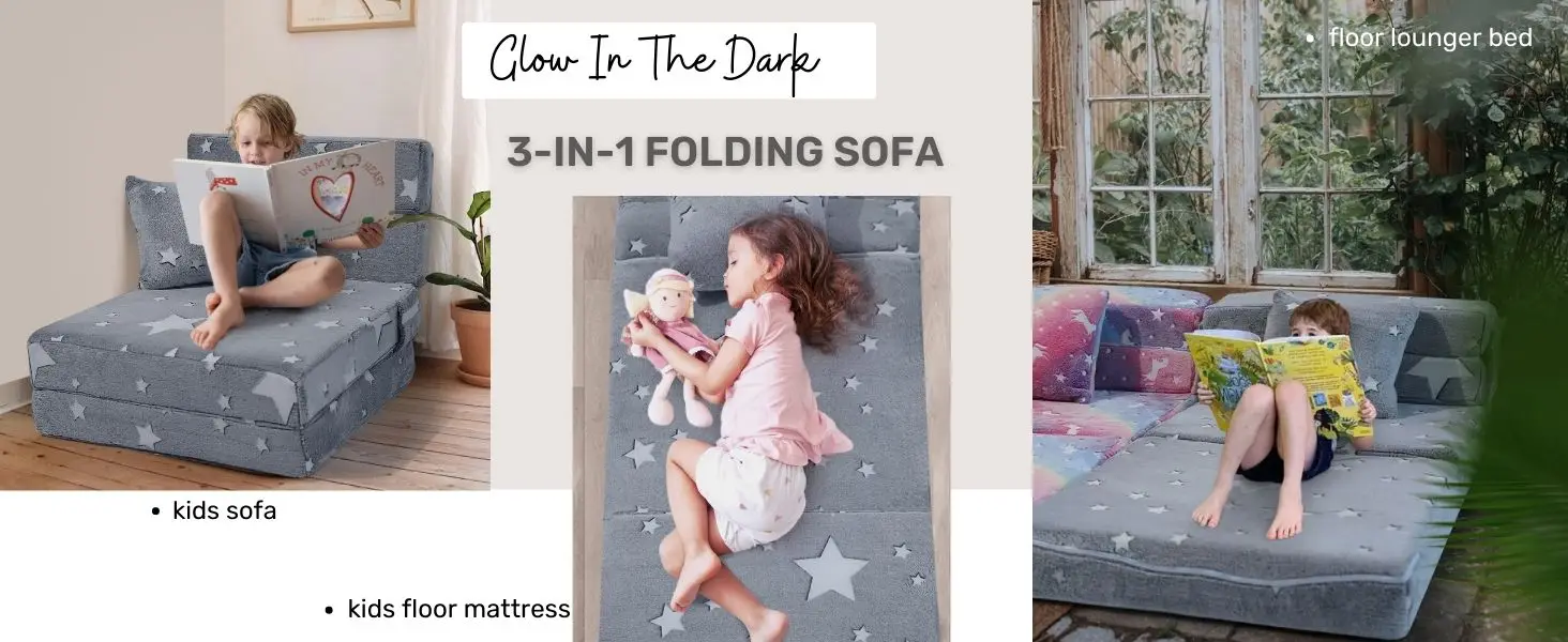 Folding Sofa Bed Floor Mattress for Kids, Glow Tri Folding Mattress Kid Fold Up Sofa Futon Folding Chair Bed, Child Foldable Mat