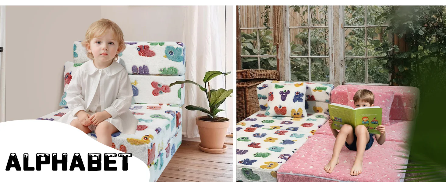 Pull out this fold-out chair, baby chair couch in a second converted into a toddler lounger sofa. Enjoy the comfortable foam and thick plush fabric whether sitting or lying down.