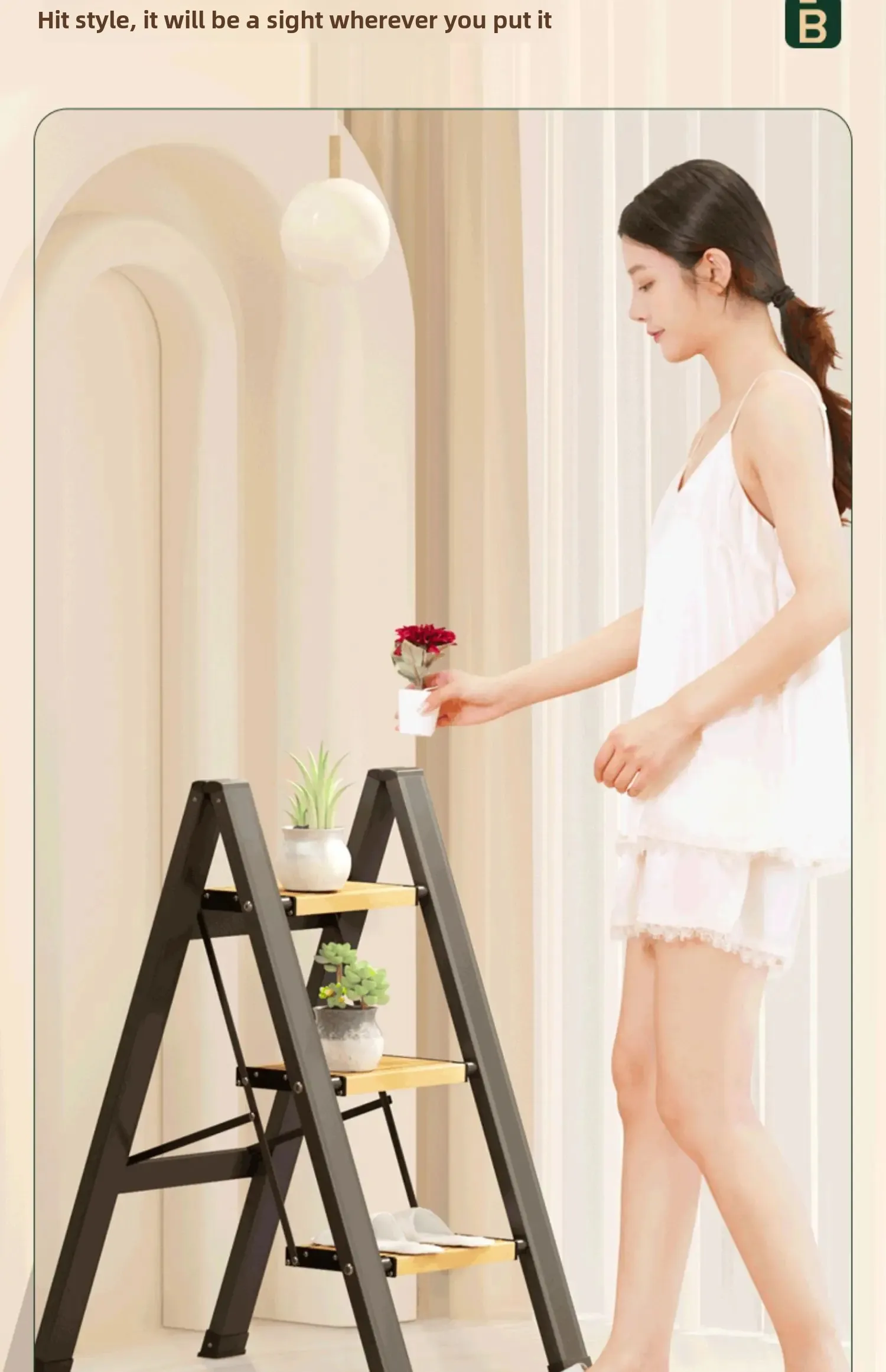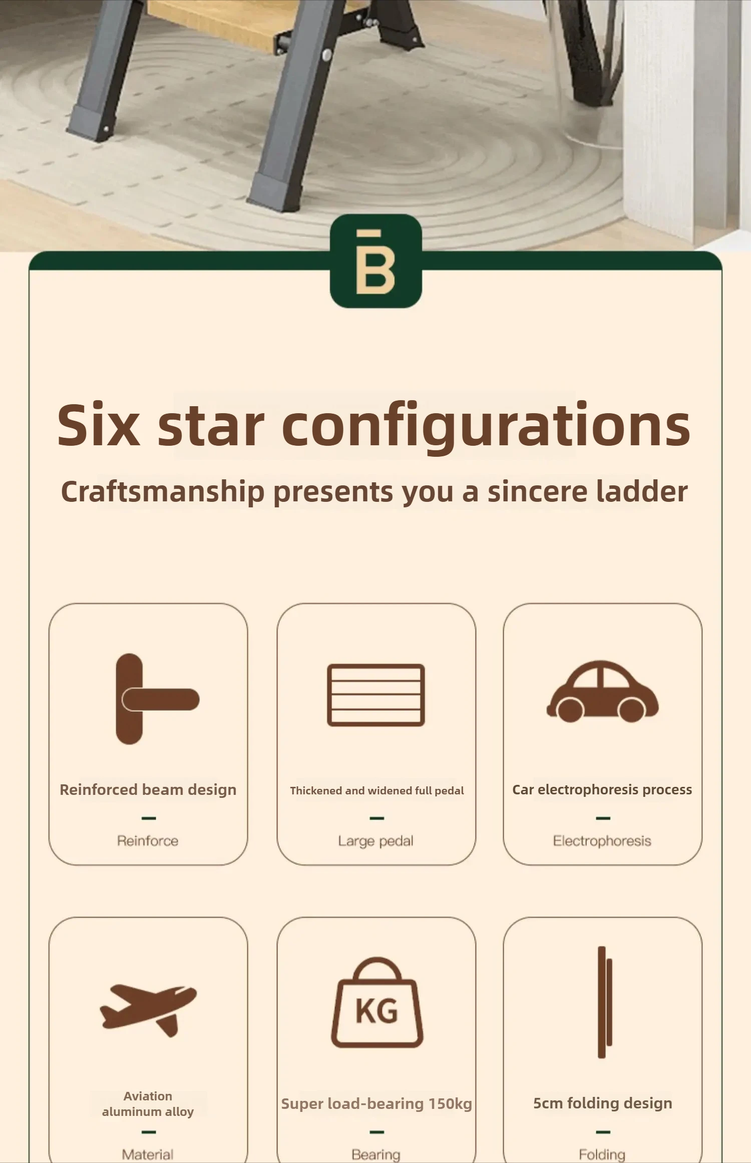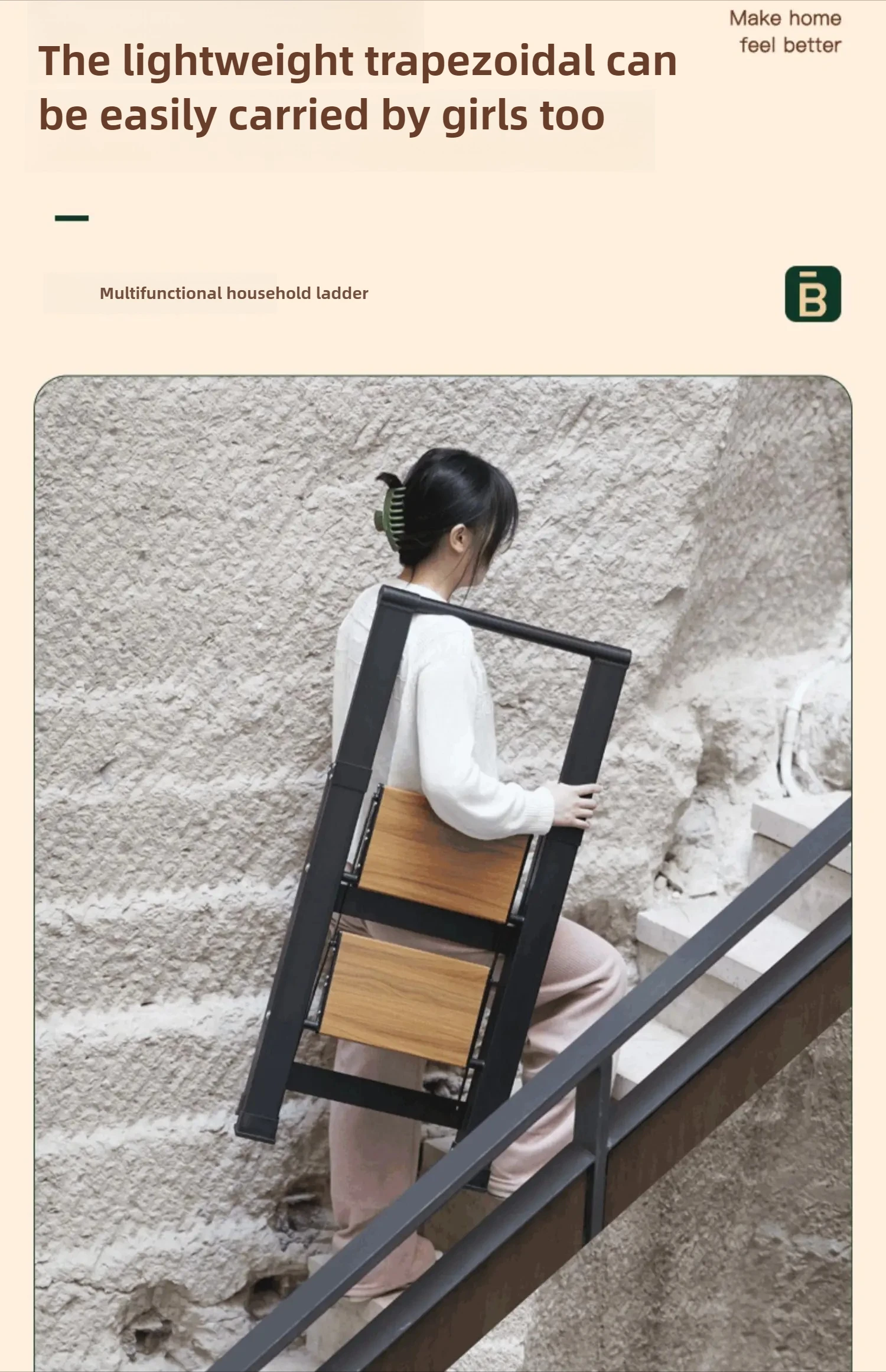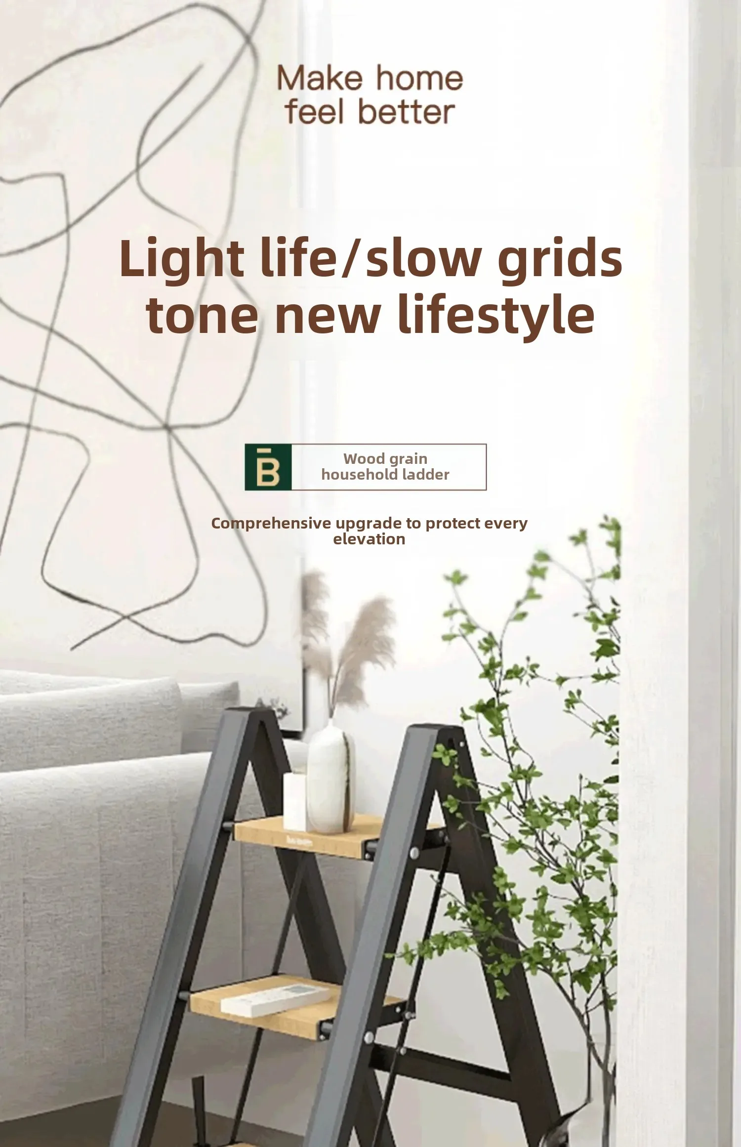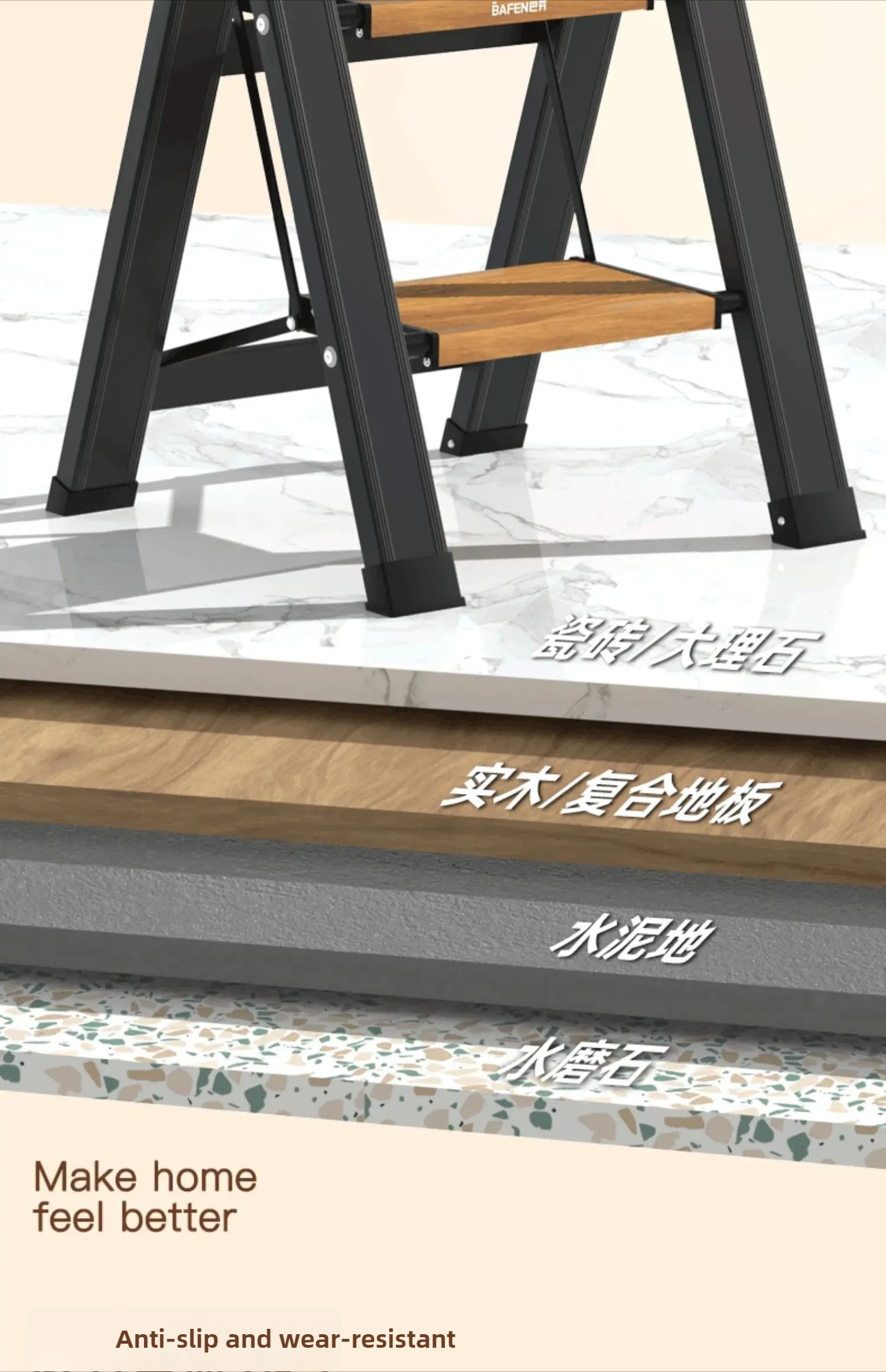 folding ladder, aluminum alloy ladder, multi-purpose step ladder, wood-grain ladder, indoor use ladder