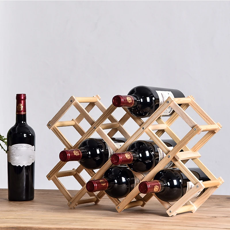Folding Wooden Wine Rack, Wine Storage Shelf, Household Decoration Supplies, Free Installation, 3-10 Bottles