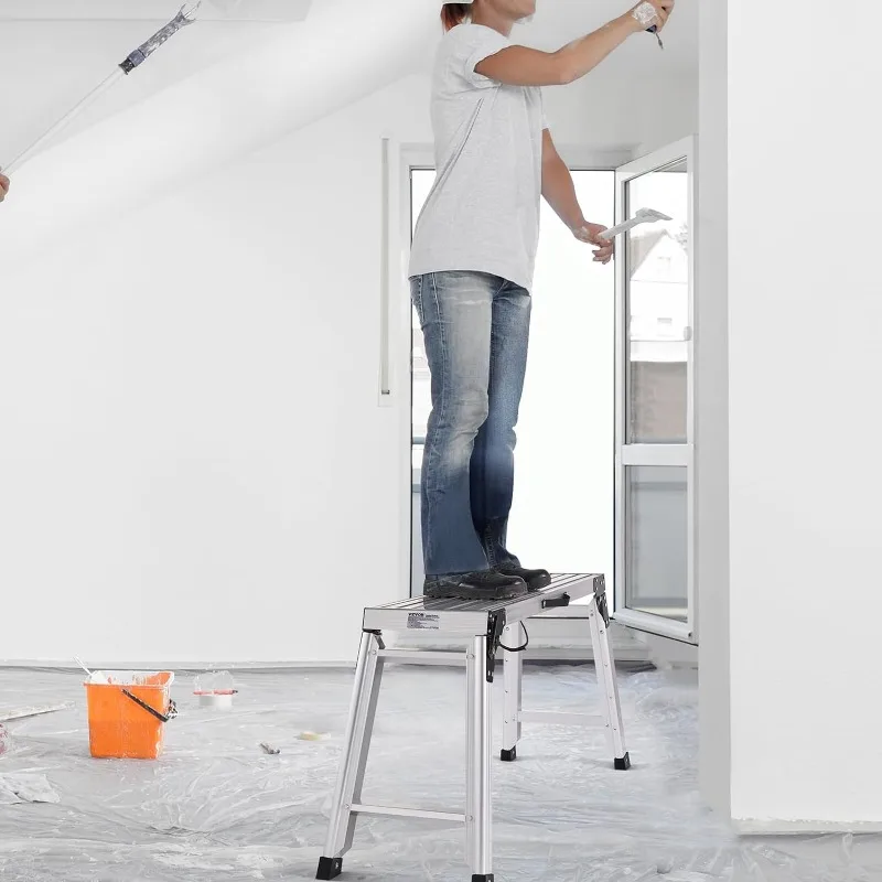 - Versatility at Its Finest: A adjustable work platform enables you to access hard-to-reach areas, eliminating the need for ladders or scaffolding. It is ideal for a wide range of indoor and outdoor applications, including home DIY projects, vehicle washing, reaching high places, and general maintenance work.