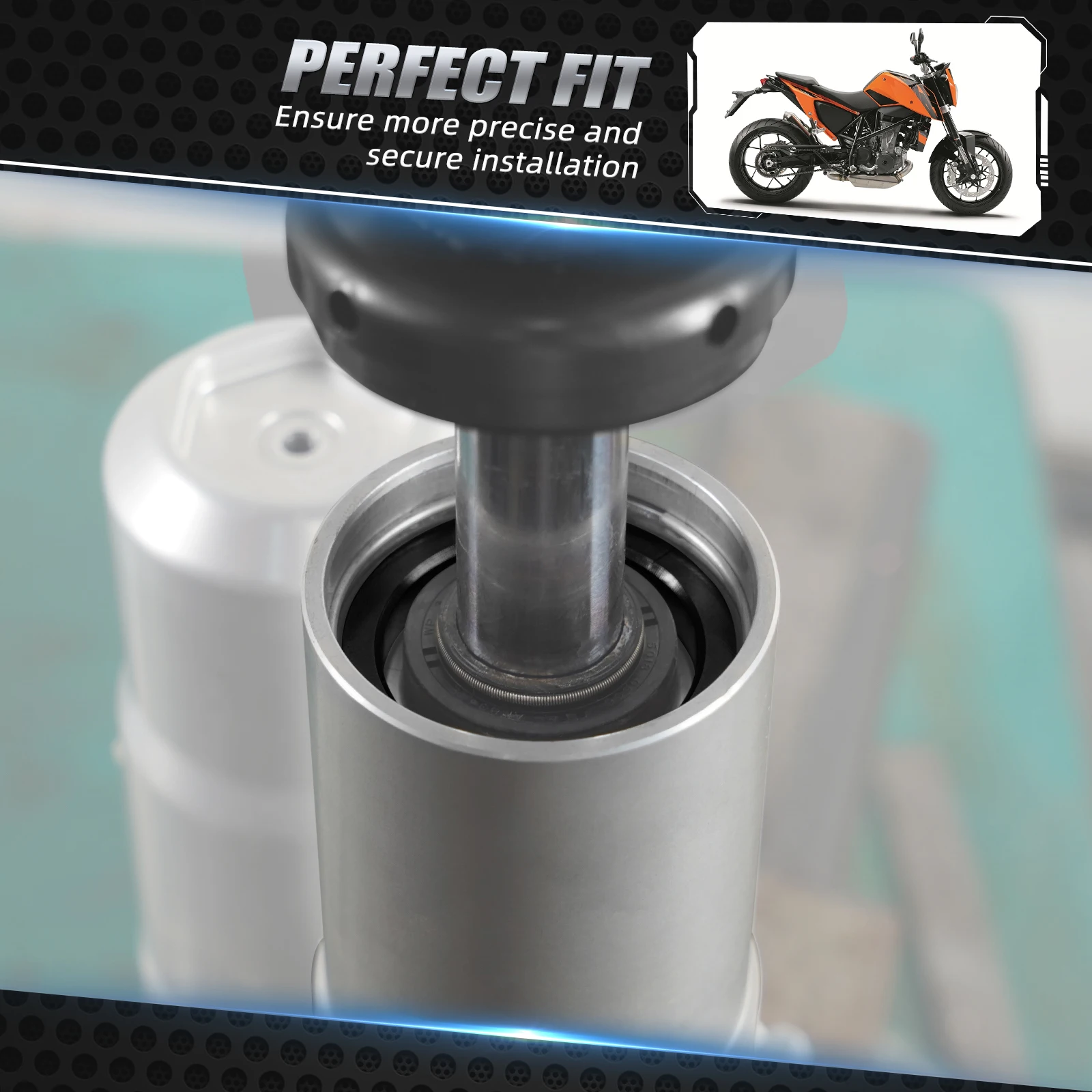 – Press down the seal head from the outside of the damper and install this kit to lower the suspension by about 30mm.