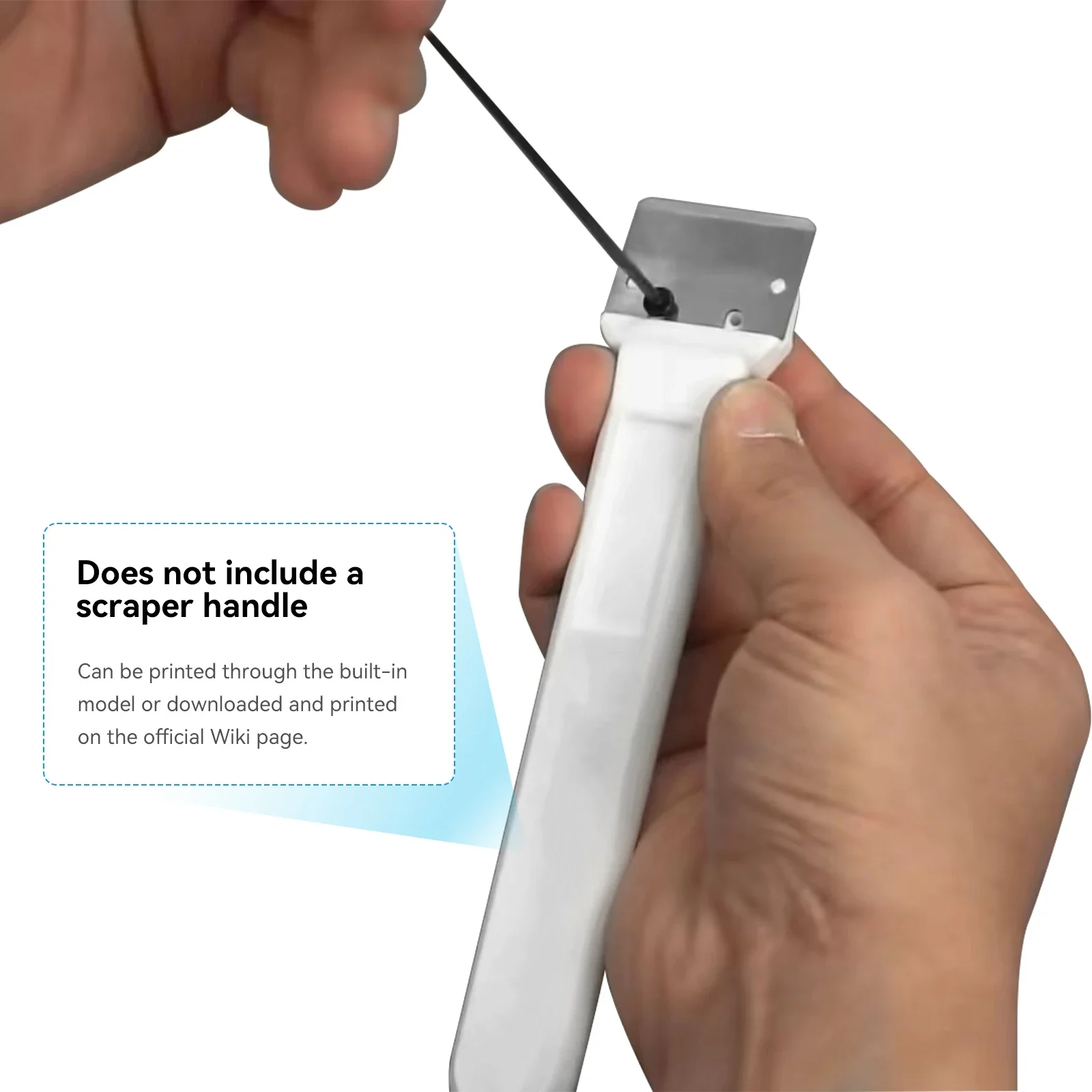 The product does not include a plastic handle, you can print it yourself on the Bambu network