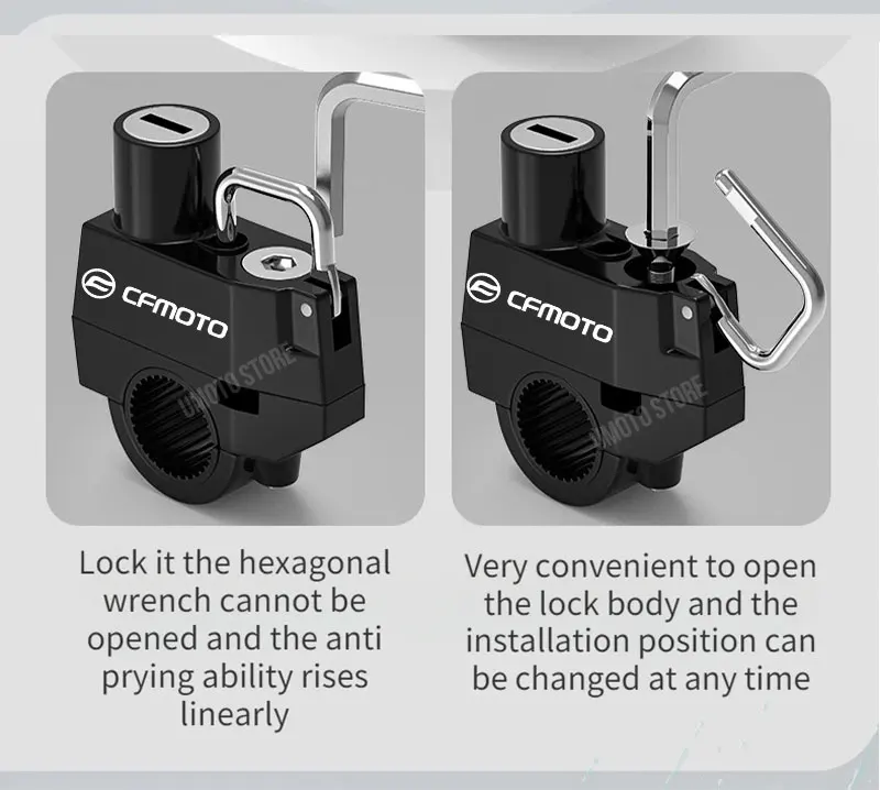 For cfmoto Universal Motorcycle Helmet Lock Scooter Bike Handlebar Mount Portable Helmet Anti-Theft Security Metal Locks with Ke