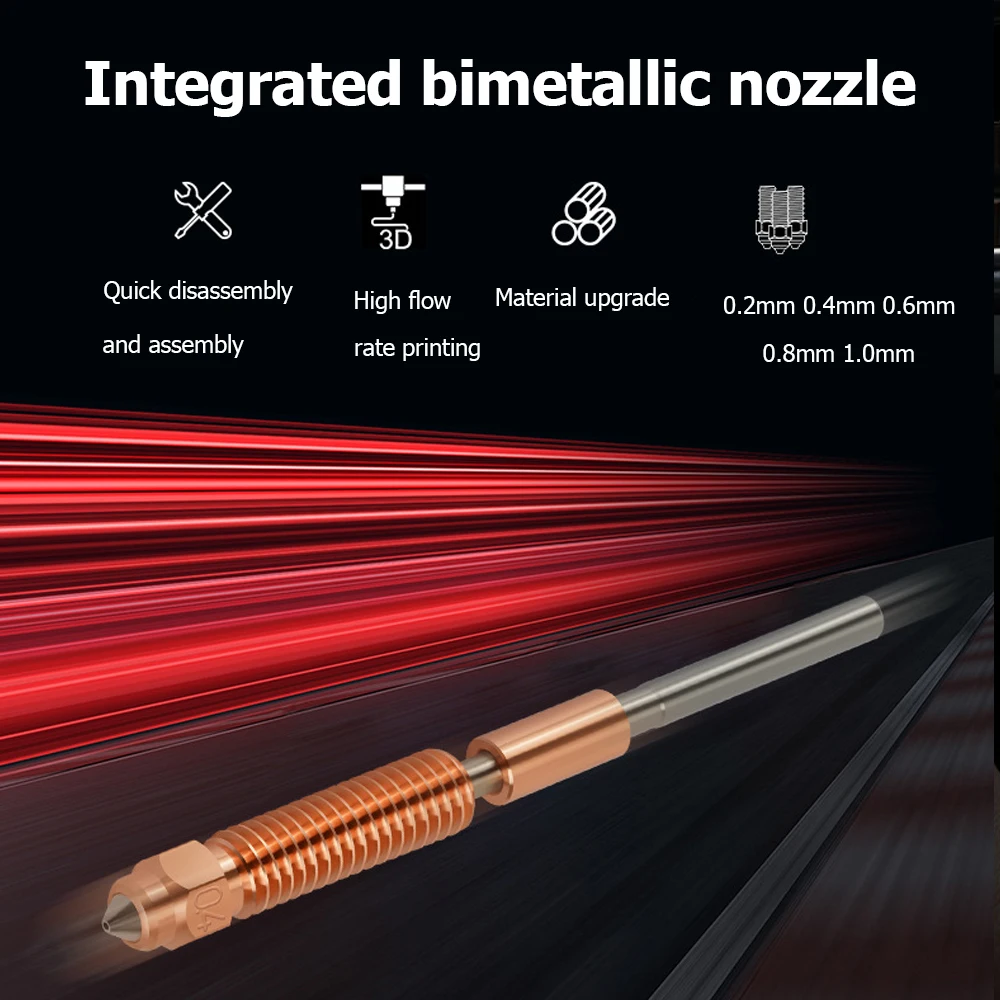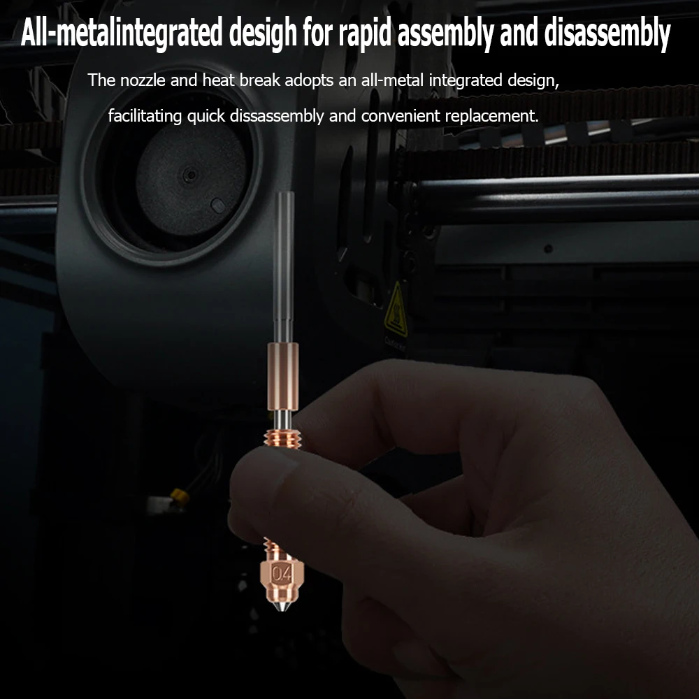 The nozzle and heat break adopts an all-metal integrated design, facilitating quick disassembly and convenient replacement