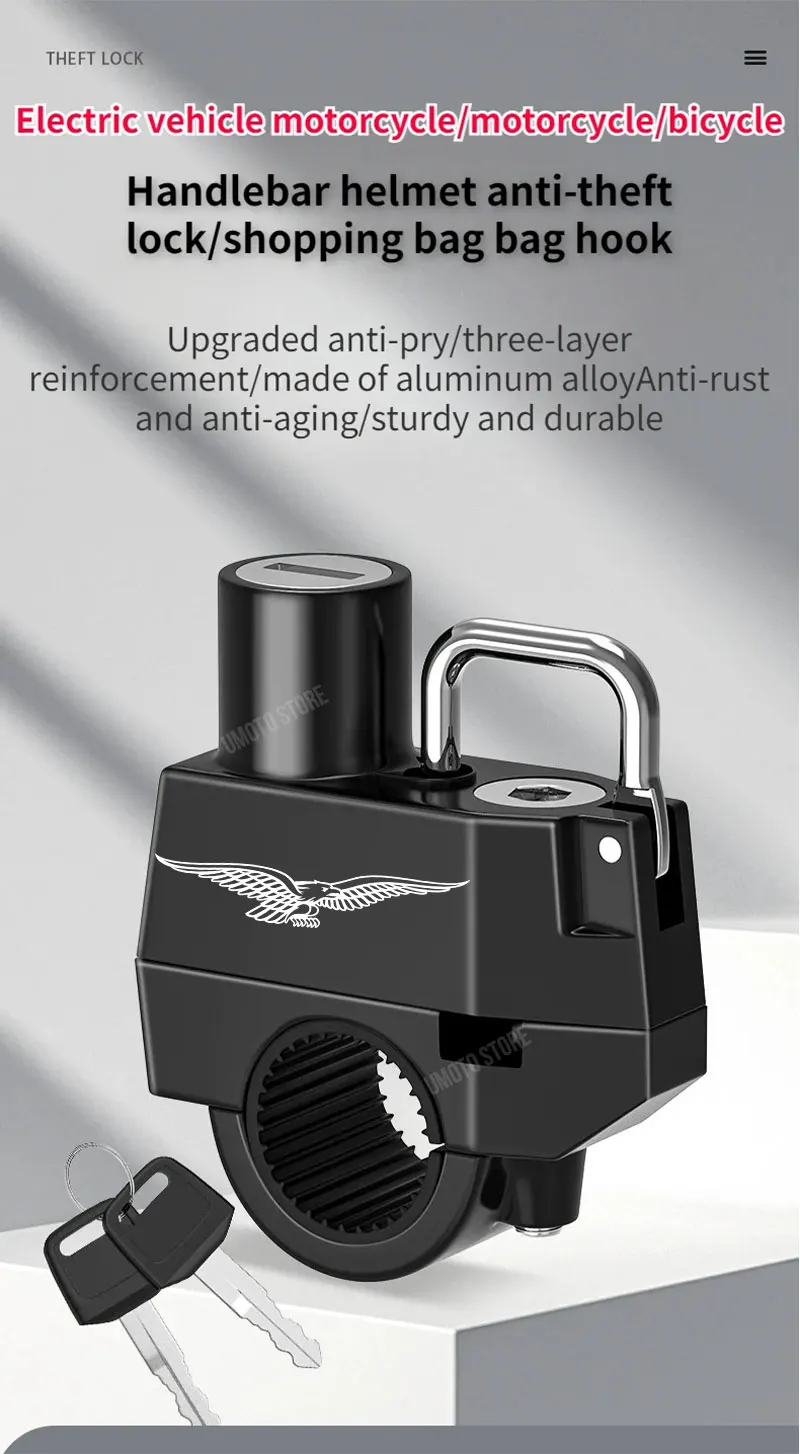 For guzzi 22-28mm Universal Motorcycle Helmet Pipe Clamp Hook Lock for Bicycles Electric Vehicle Moto Scootersl Anti Theft Fixin