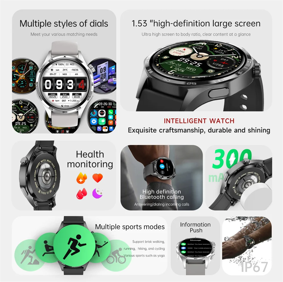 For Huawei GT5 Smart Watch Men Waterproof Watch 5 Pro AMOLED HD Screen Bluetooth Call Health Monitoring GPS Tracker Smartwatch