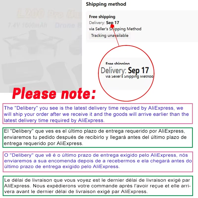 Note: Batteries cannot be shipped using AliExpress standards. We will use the seller’s shipping method to send to you. Please understand that the estimated arrival time is 15-20 days, and the tracking number can be traced. If you have any questions, you can contact us