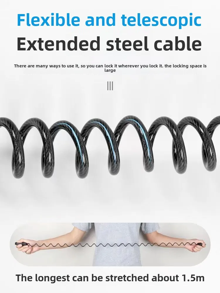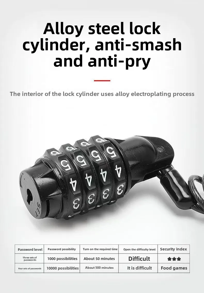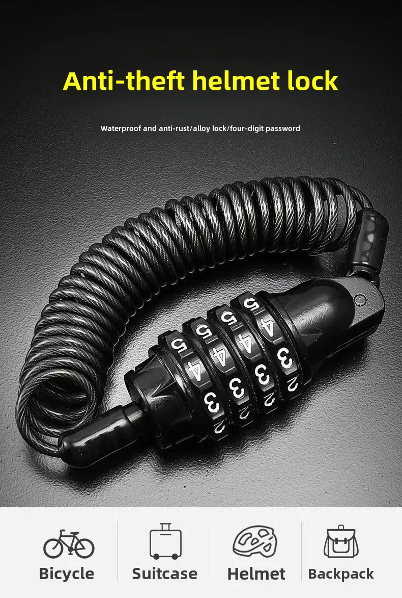 For Motorcycle Bicycle Anti-Theft Chain 4-Digit Password Combination Helmet Lock Safety Portable Cable Lock Durable Wire Rope