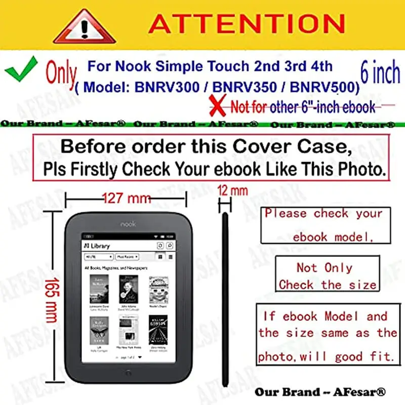 For Nook Touch eBook Reader Cover Case, Folio Premium PU Leather Pocket Cover for Nook 2 BNRV300 /Nook 3 BNRV350 /Nook 4 BNRV500