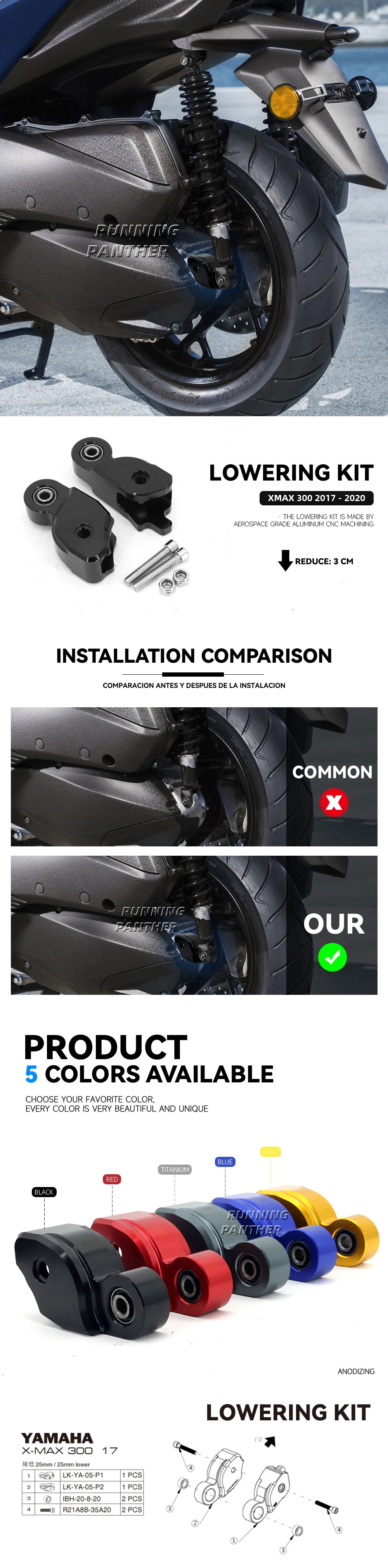 For YAMAHA XMAX300 XMAX 300 X-MAX 300 X-MAX300 CNC Aluminum Lowering 3CM Motorcycle Rear Shock Kit Black Titanium Red Blue Gold
