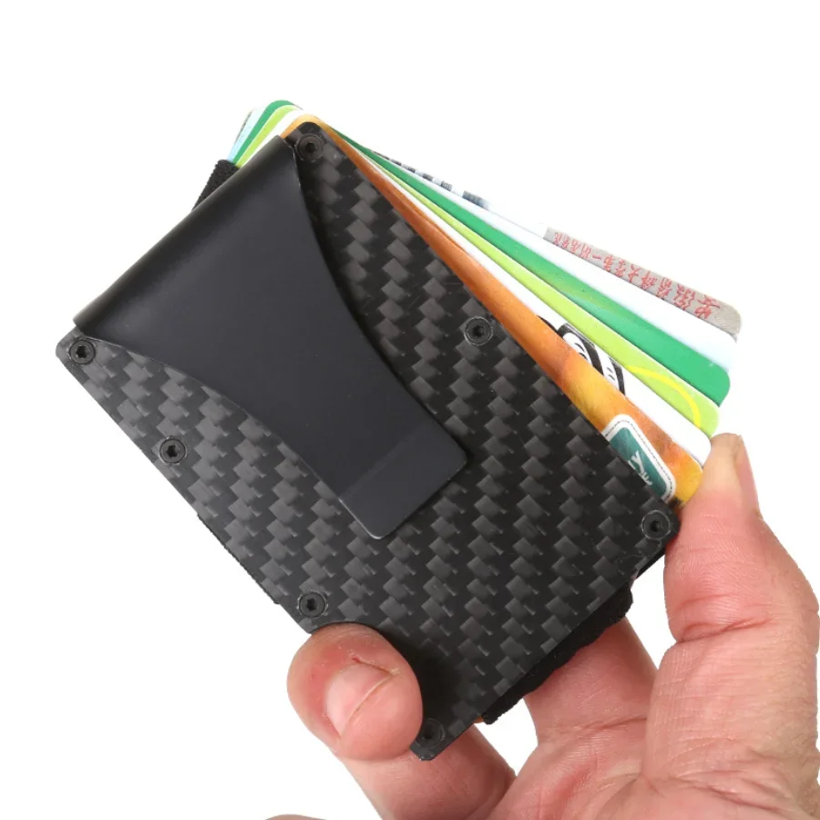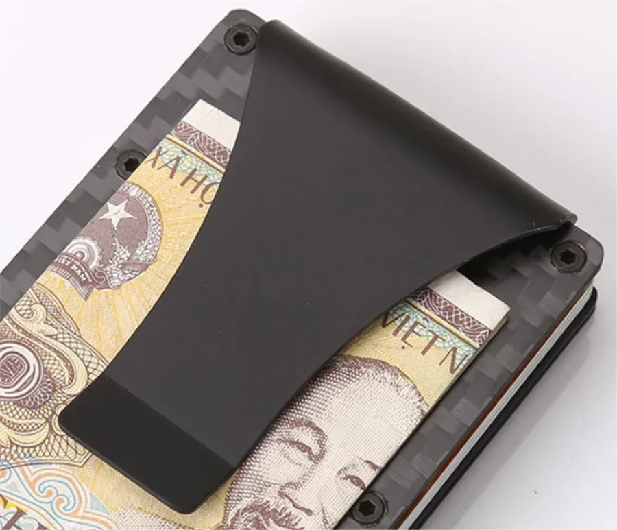 Forged Carbon Fiber Minimalist Slim Smart Wallets for Men Cashback Credit Card Holder Luxury Aluminium Wallet Rfid Money Clip