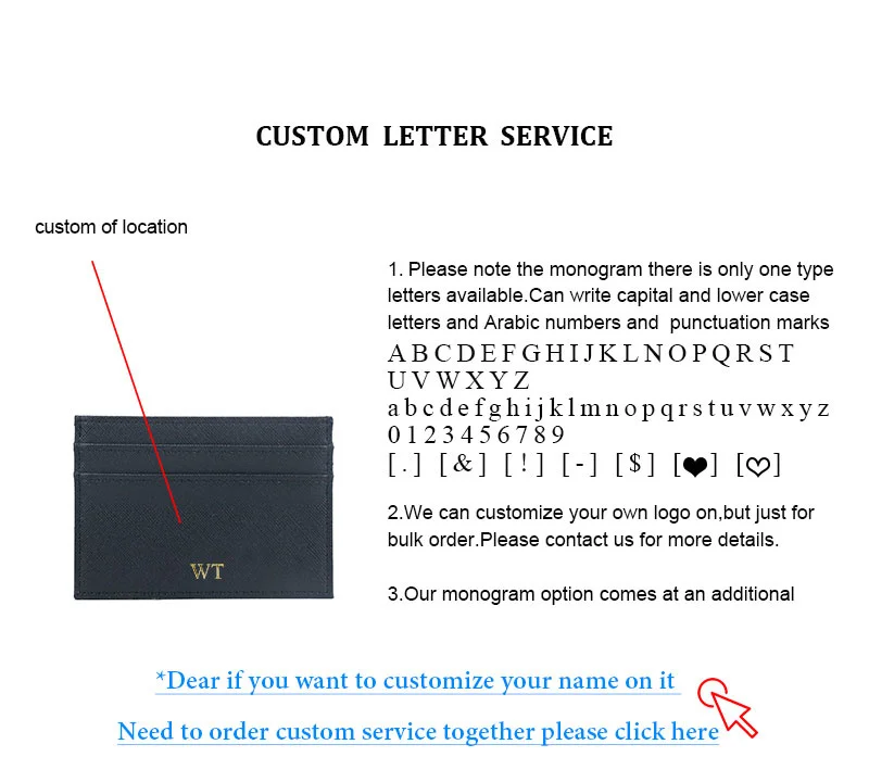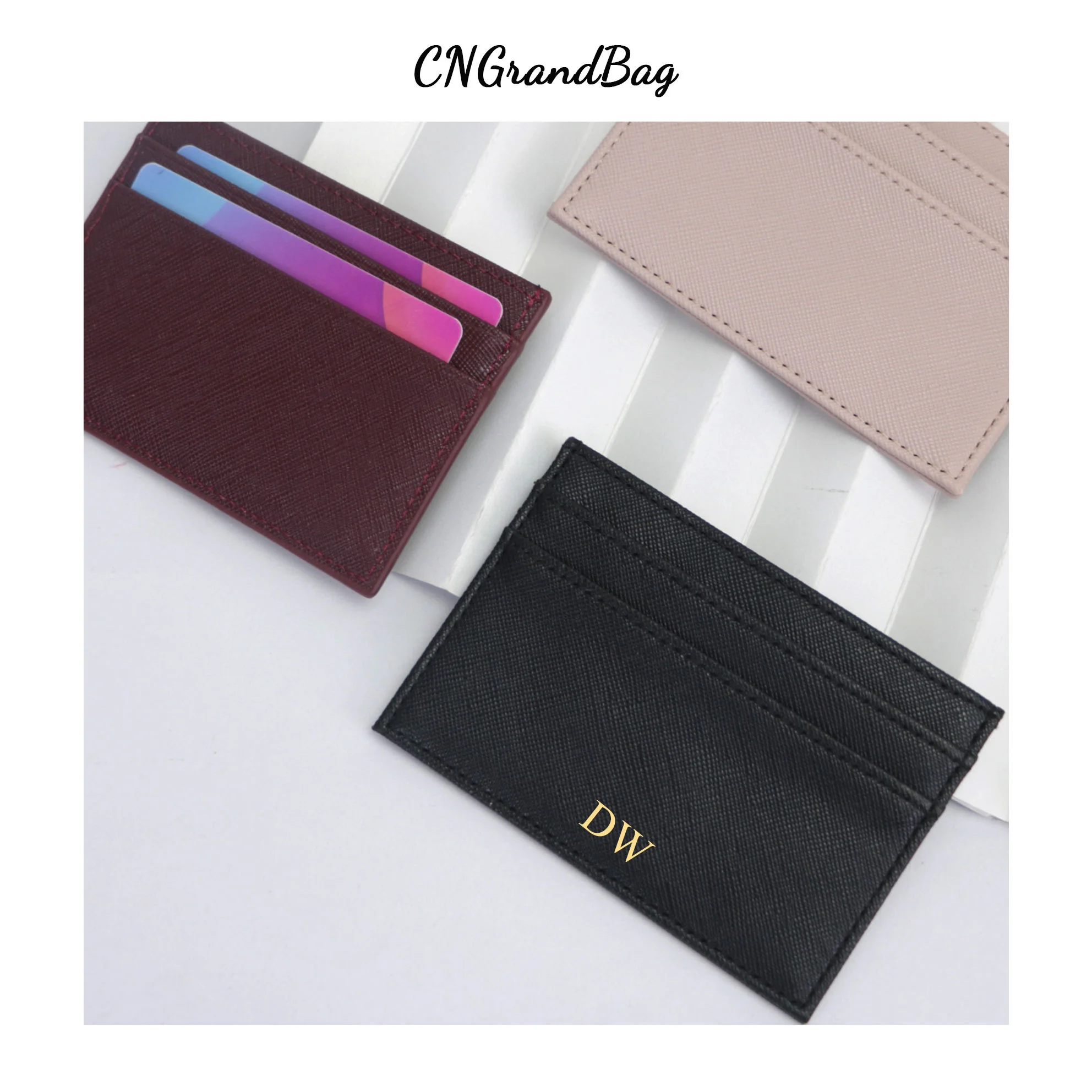 Free Custom Initial Letters Dropshipping Slim RFID Blocking Wallet Saffiano PU Leather Credit Card Holder ID Card Case Gift