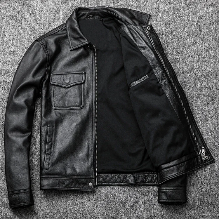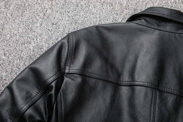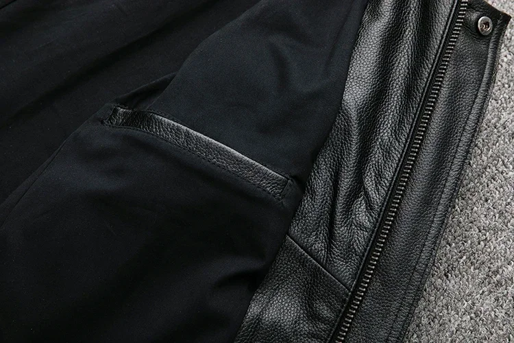 Free Shipping.7XL Genuine Leather jacket.Winter casual black Men cowhide clothes.quality plus size leather coat.натуральная кожа