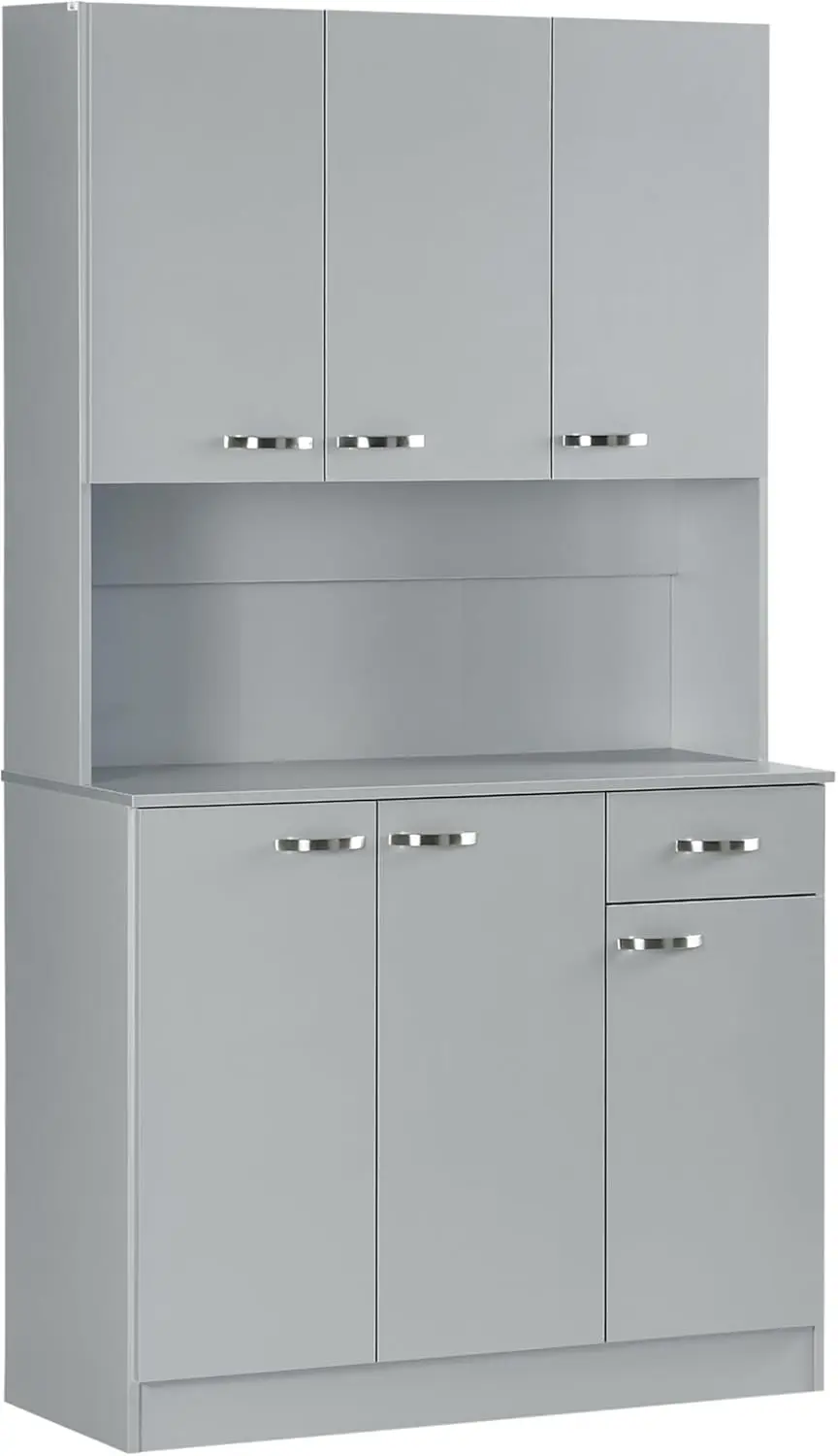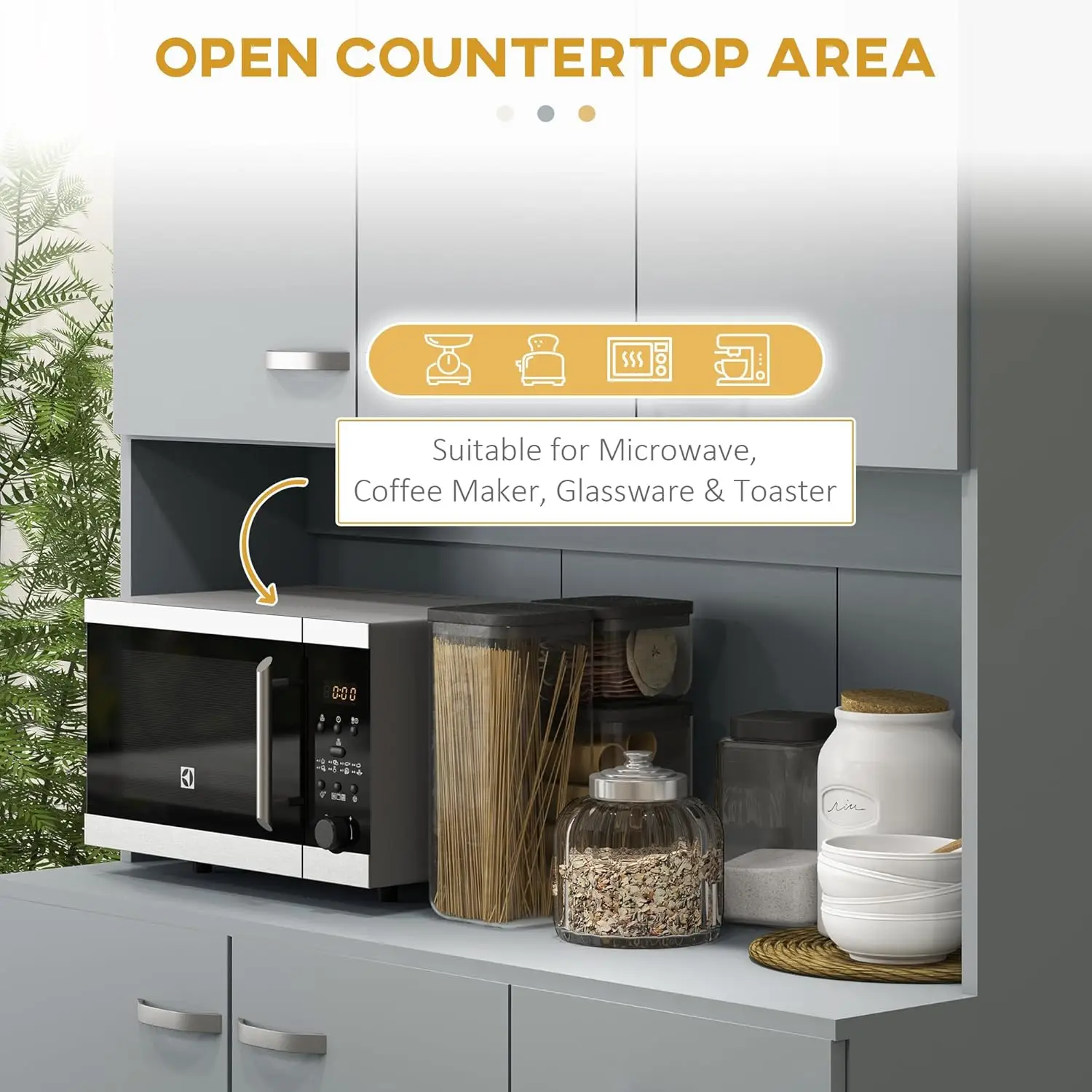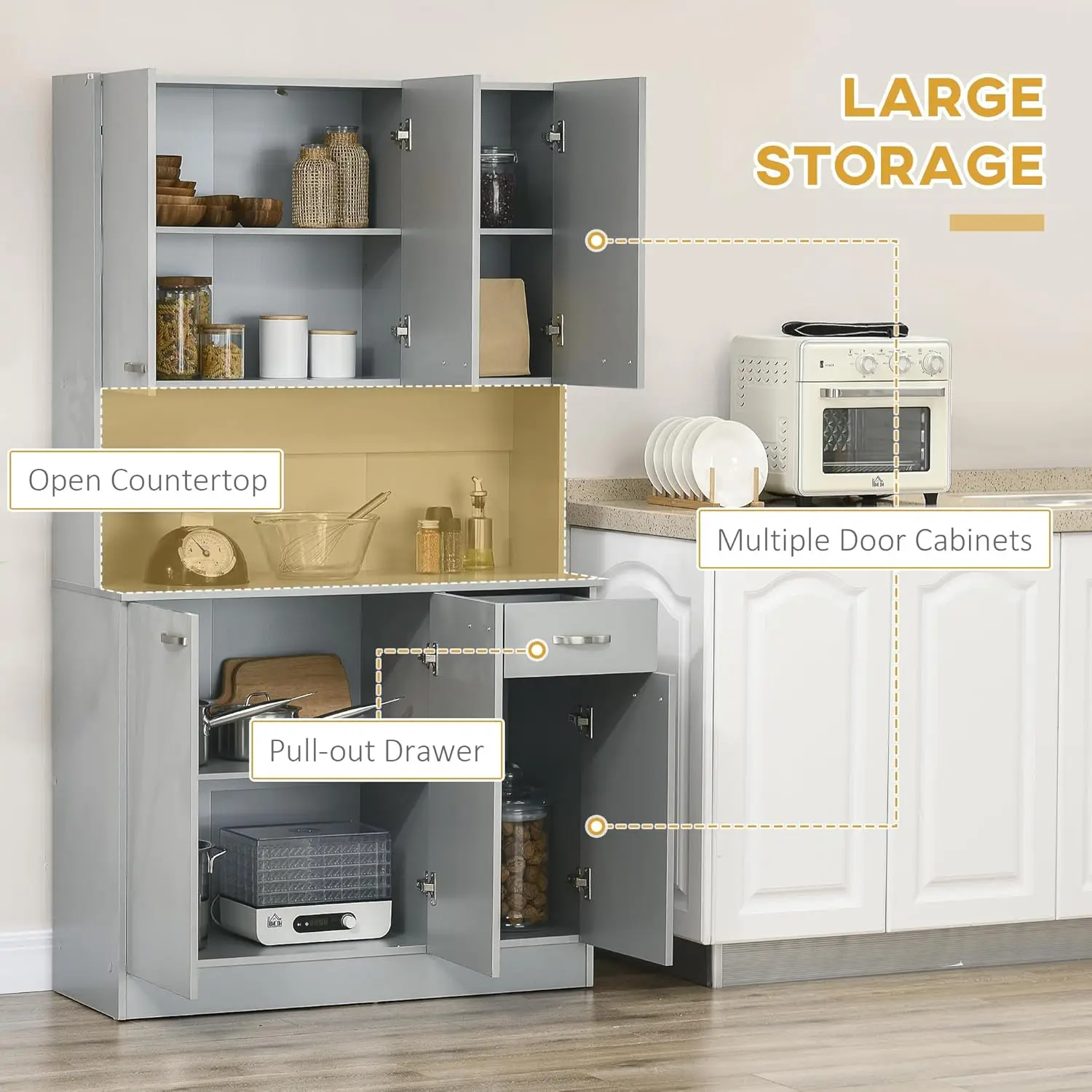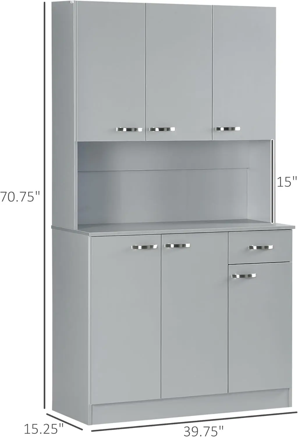 Freestanding Buffet with Hutch Kitchen Storage Cabinets Pantry with 6 Doors 3 Adjustable Shelves and Drawer for Living Room Gray