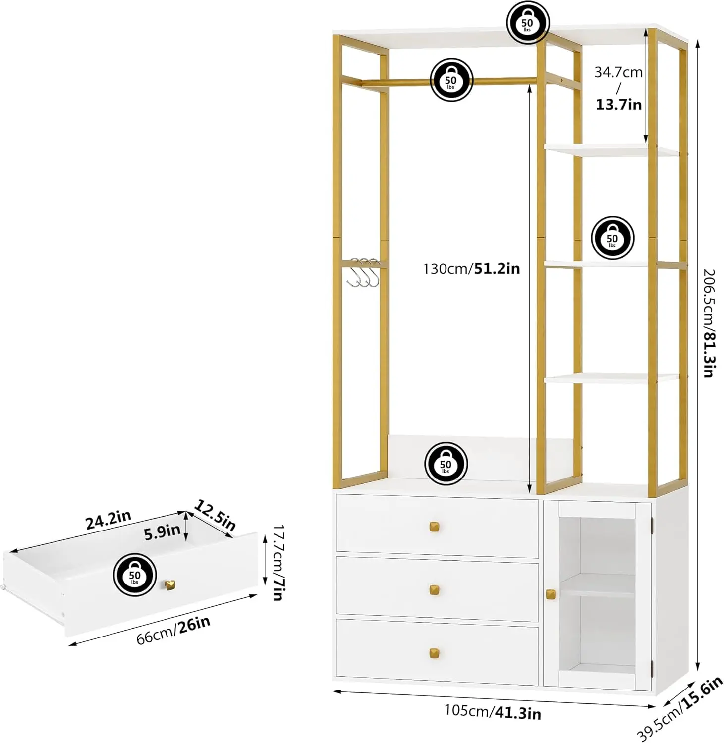 • Sturdy and Stable: Made of high-quality engineered wood and reinforced with a metal frame, this closet organizer and storage is sturdy and stable. The anti-tipping device ensures safety, and the wooden base that completely fits the ground is safer and more stable than the iron pipe support legs