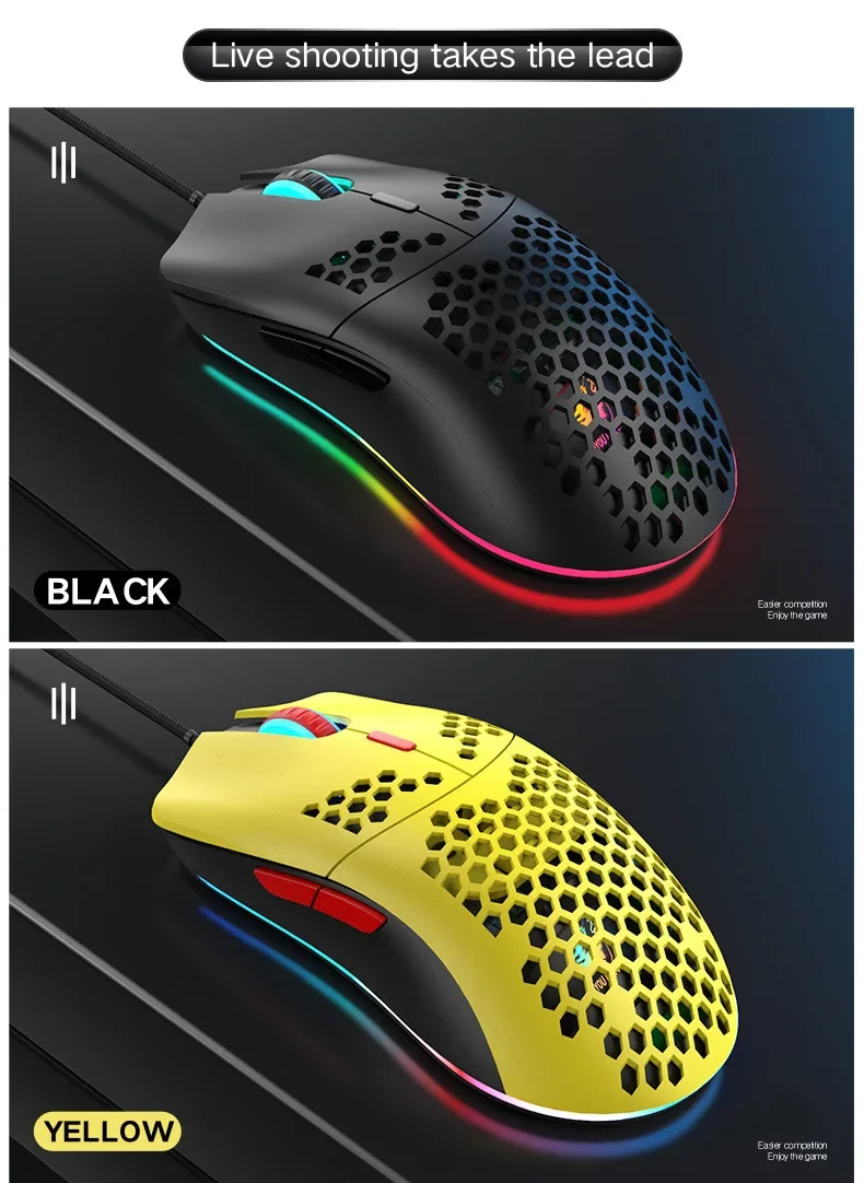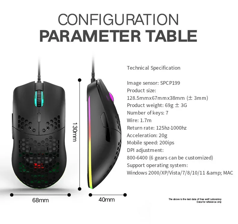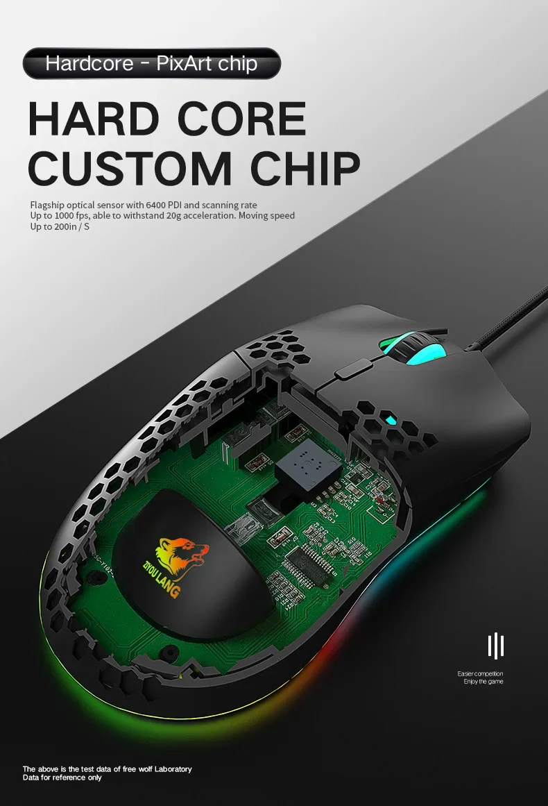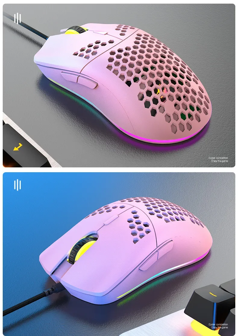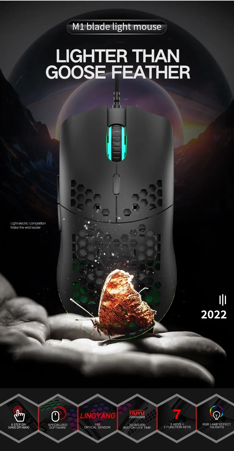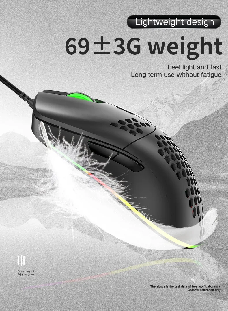 Freewolf M1 Wired Honeycomb Hollow-out Mouse Low Latency 69g Ultra Light Esports Gaming Mouse Laptop Gamer Accessories 6400 DPI