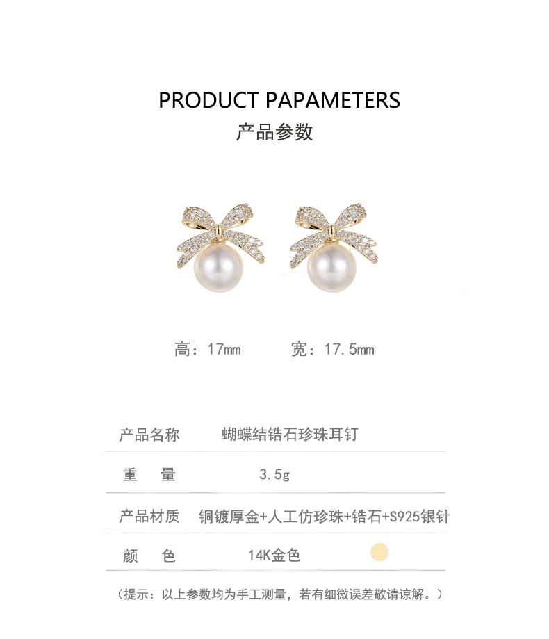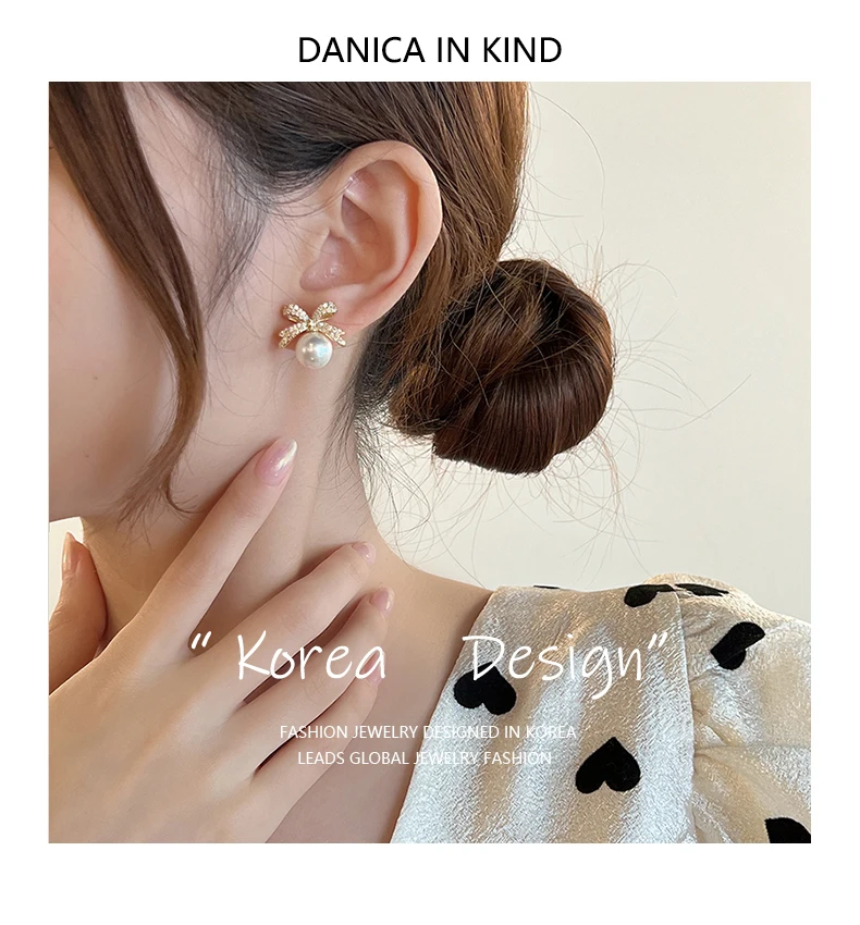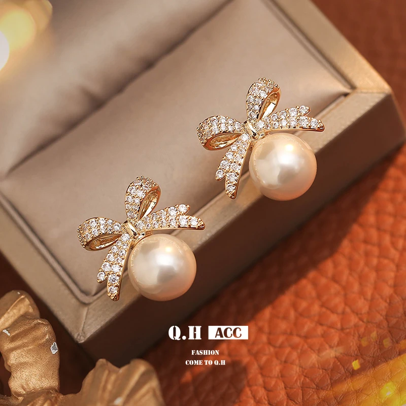 French Sweet Personality Pearl Simple And Small Design Sense Full Of Drill Bow Delicate All-matching Earwear Female