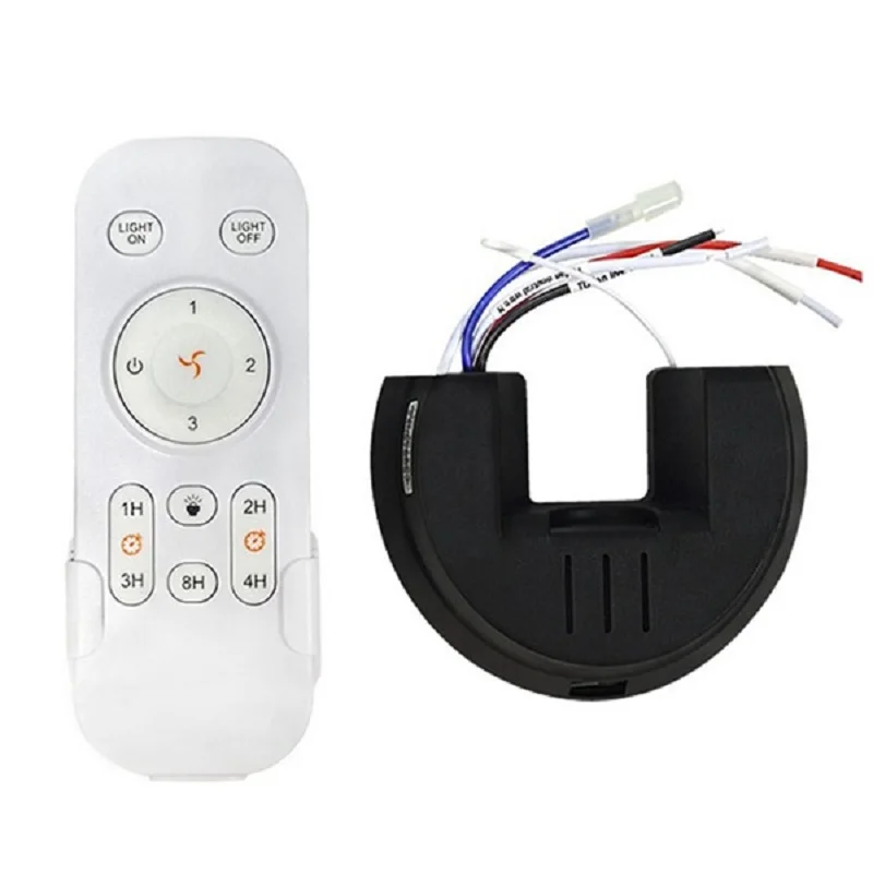 [Multifunctional Ceiling Fan Remote Control]This fan remote control kit can convert a normal ceiling fan into a remote control. 3-speed (high/medium/low) and off; 5 independent timing remote settings and control buttons: 1H, 2H, 3H, 4H, 8H; adjustable forward and reverse. 1 button for light on/off control.