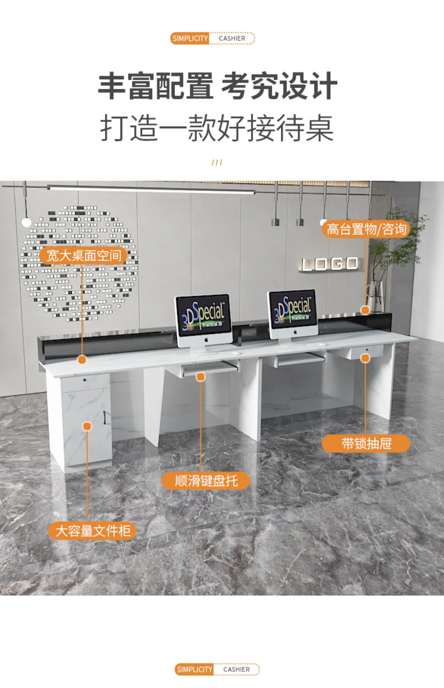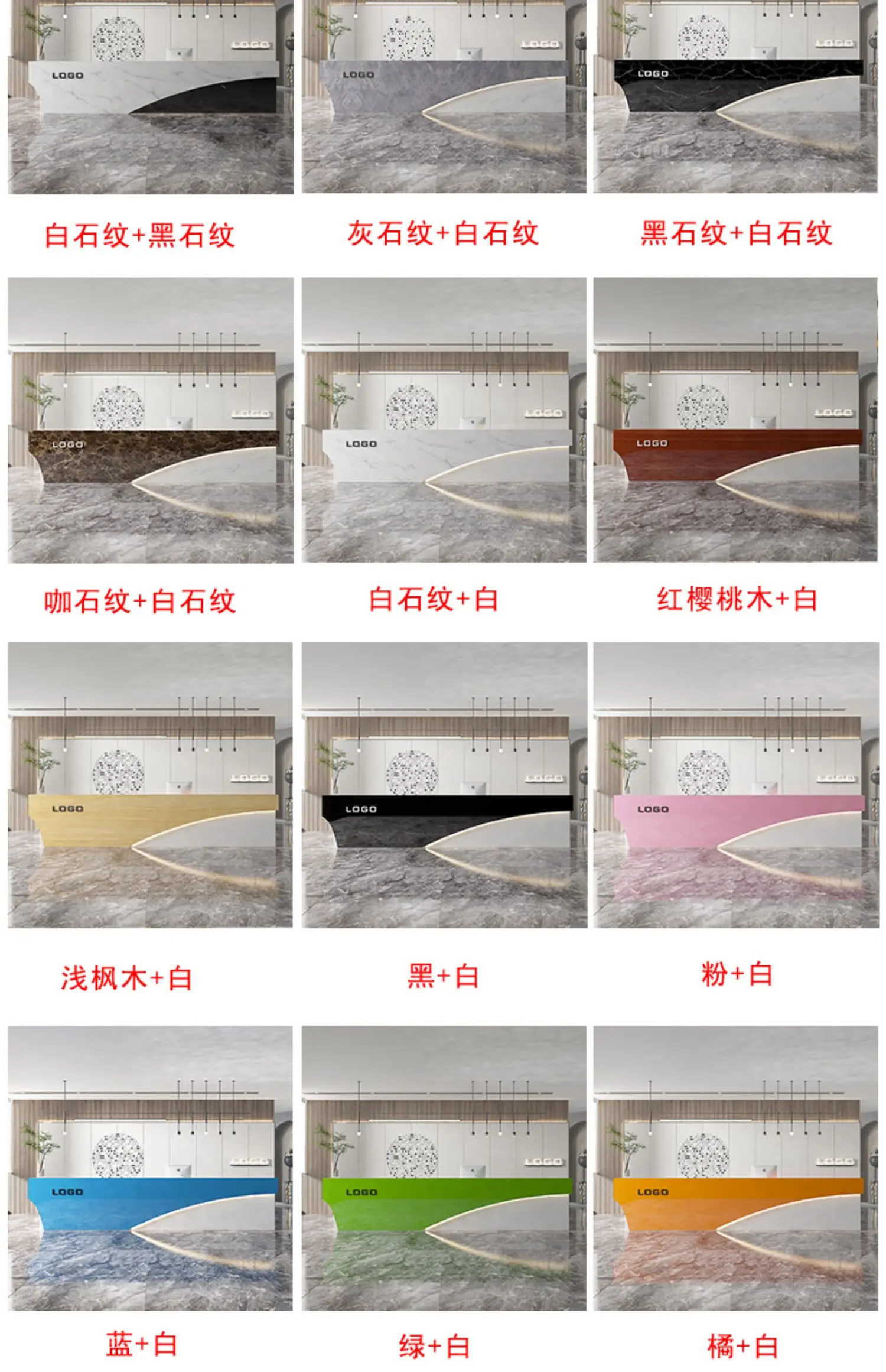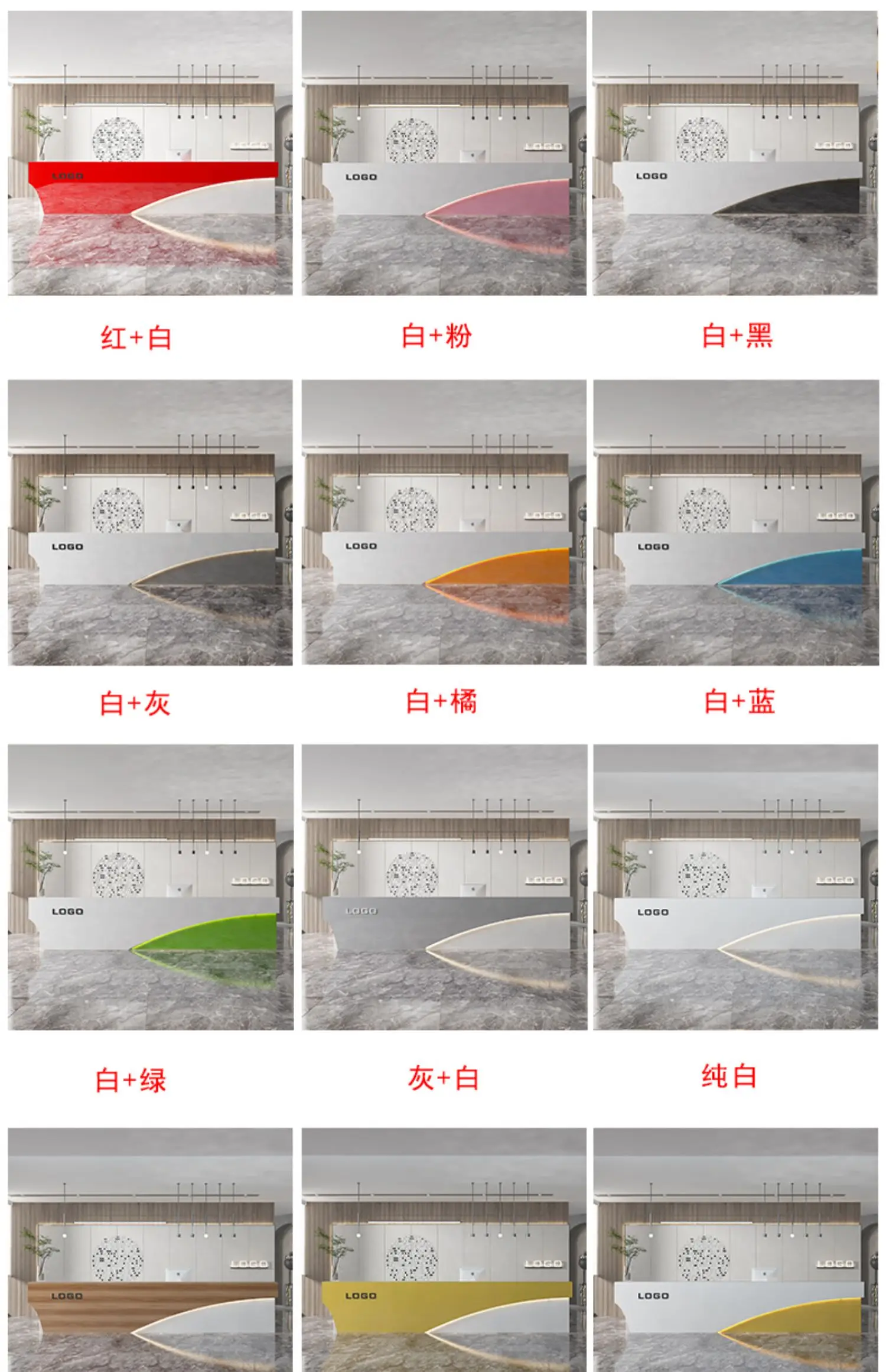 This professional reception desk is a popular choice among many companies and stores. It offers five color options, allowing you to match it with your unique space style.