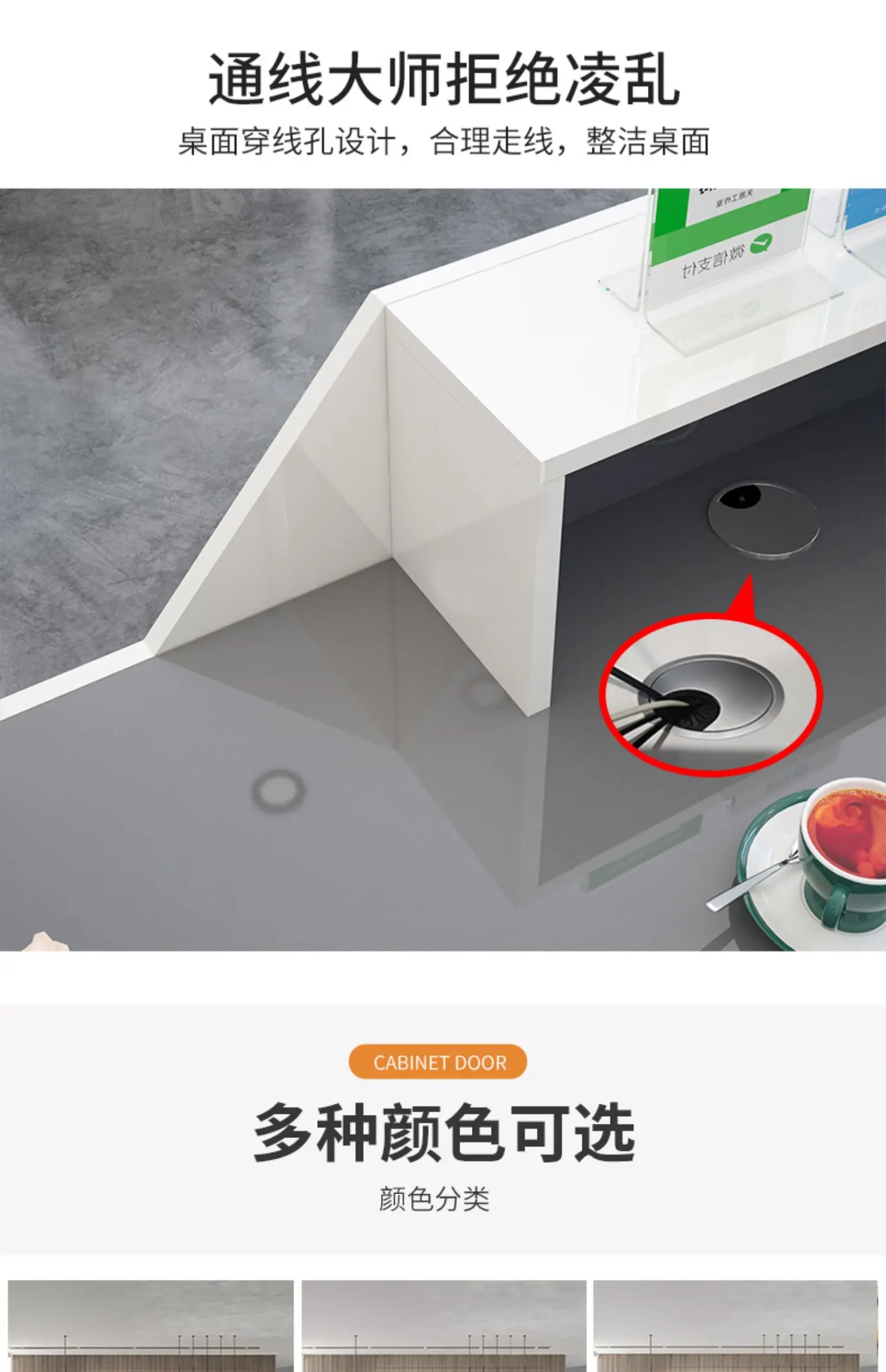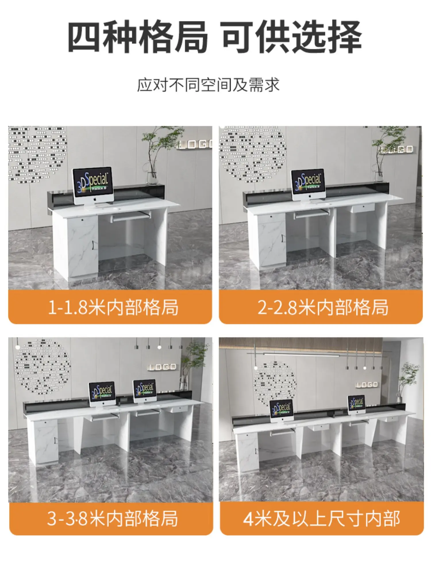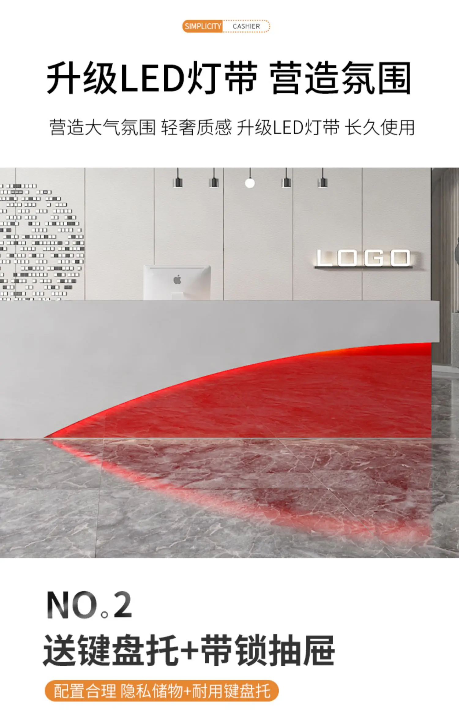 This professional reception desk is a popular choice among many companies and stores. It offers five color options, allowing you to match it with your unique space style.