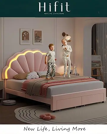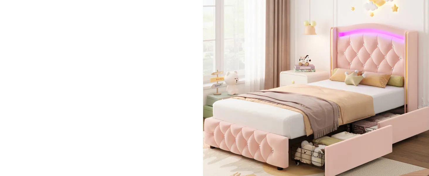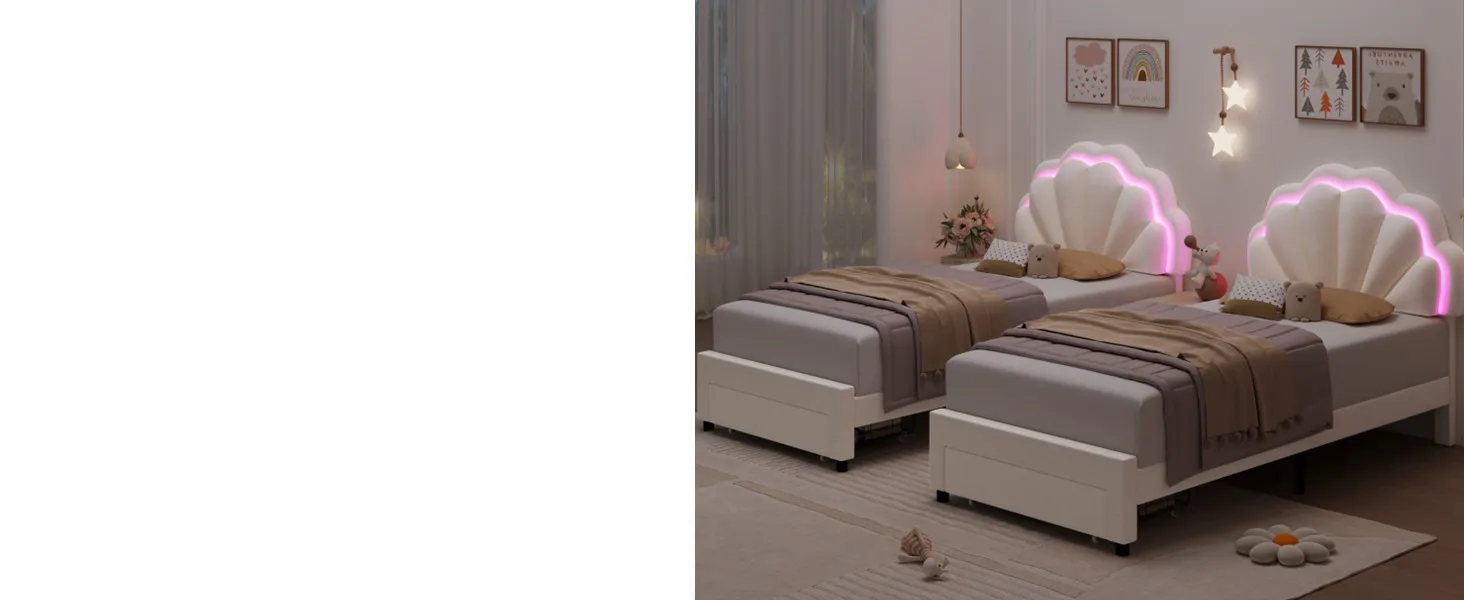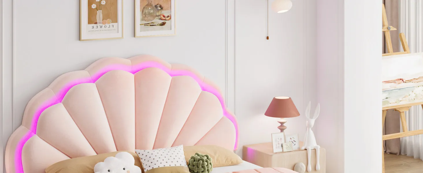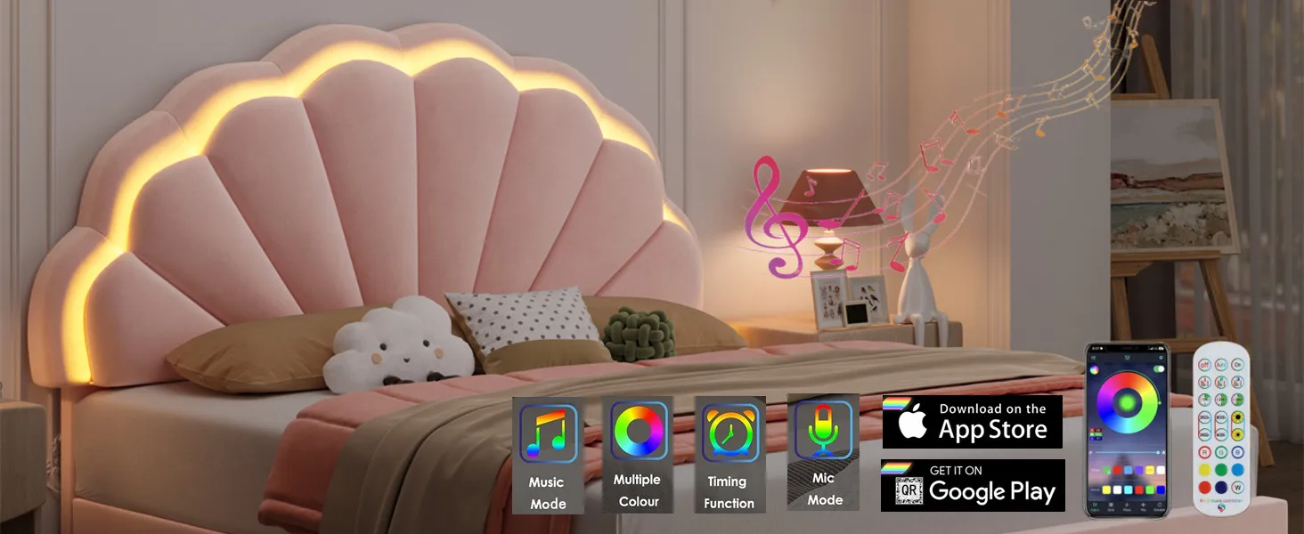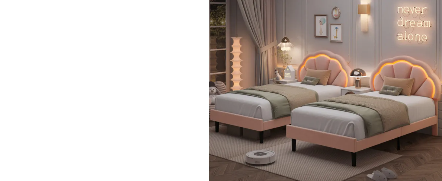We believe that every girl deserves a magical and cozy beds to call her own, where she can feel safe, relaxed, and inspired. The HIFIT upholstered LED bed frame with a petal headboard is ideal for her. The playful and imaginative petal headboard is adorned with colorful LED lights that are sure to ignite creativity, while the bright yet elegant color options and skin-friendly velvet surface bring a touch of fun, vibrancy, and comfort to the sleeping space. Now, treat your girls or loved ones to a dreamy night’s sleep in this cute platform bed.