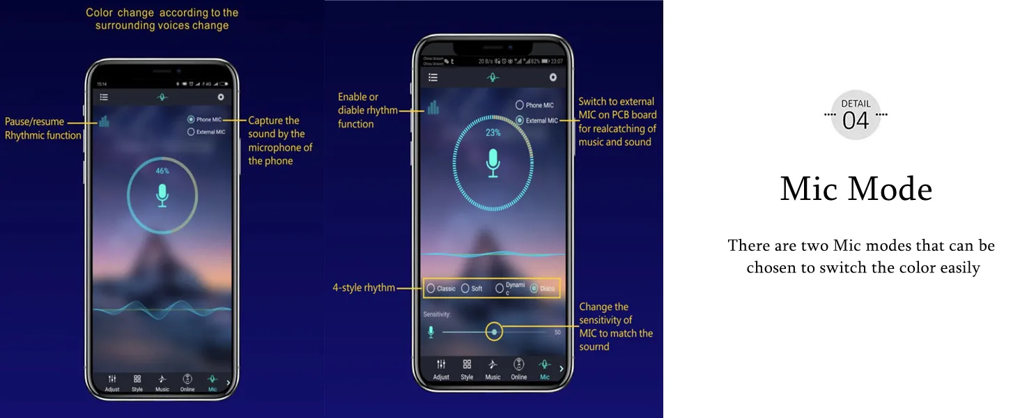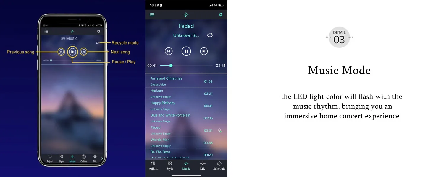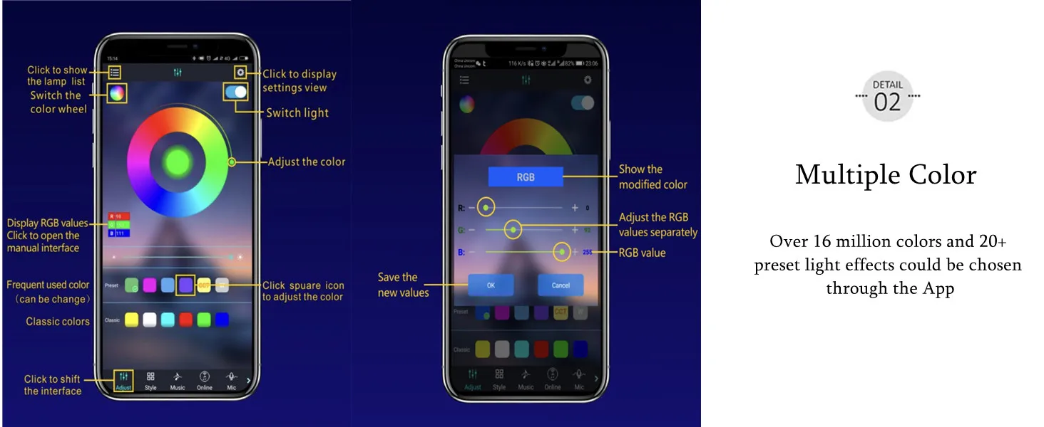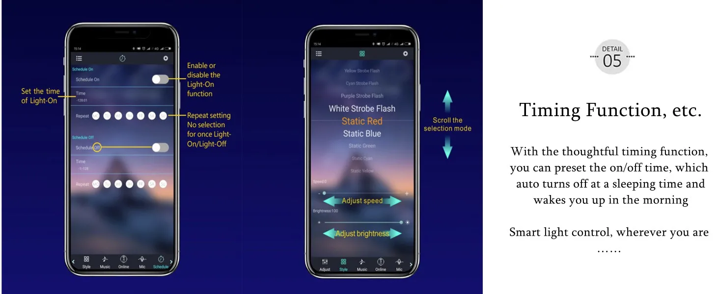 1 Smart LED Bed 2 Multiple Colors 3 Music Mode 4 Mic Mode 5 Timing Fuction