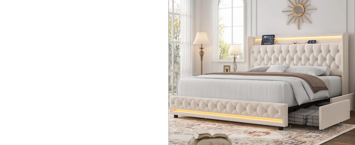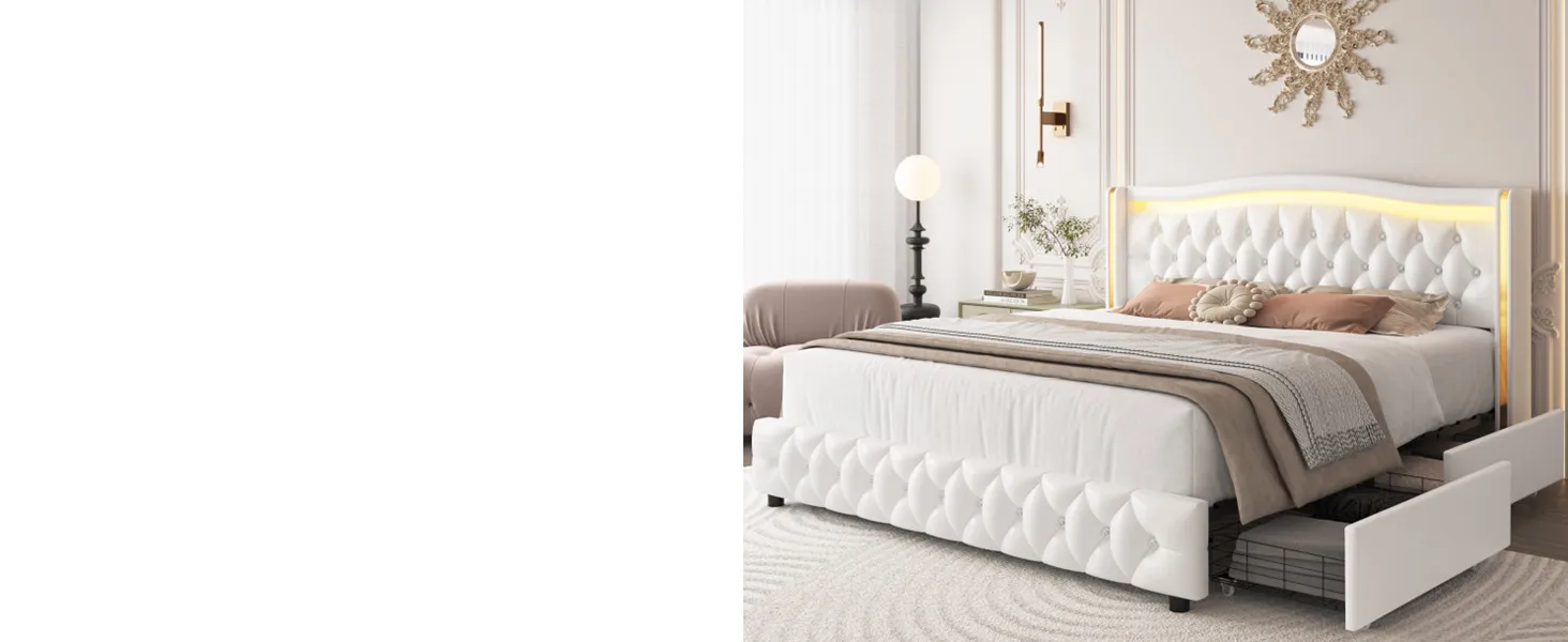Featuring a built-in smart RGB LED light strip, our bed offers over 16 million colors, 20+ preset light effects, and multi-functional modes such as music sync, timer settings, and voice control. Easily control the LED bed via an APP or remote for a personalized bedroom ambiance like never before.