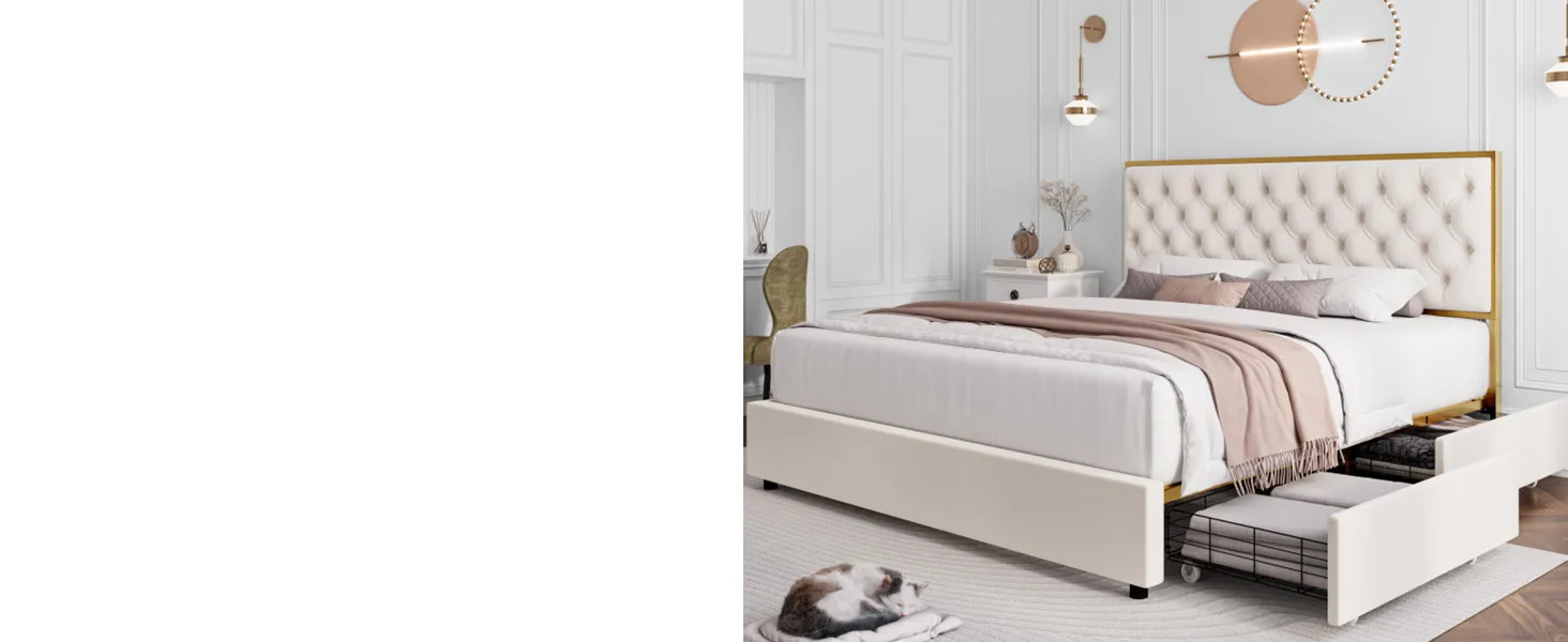● With crystal button-tufted wingback headboard and 4 storage drawers