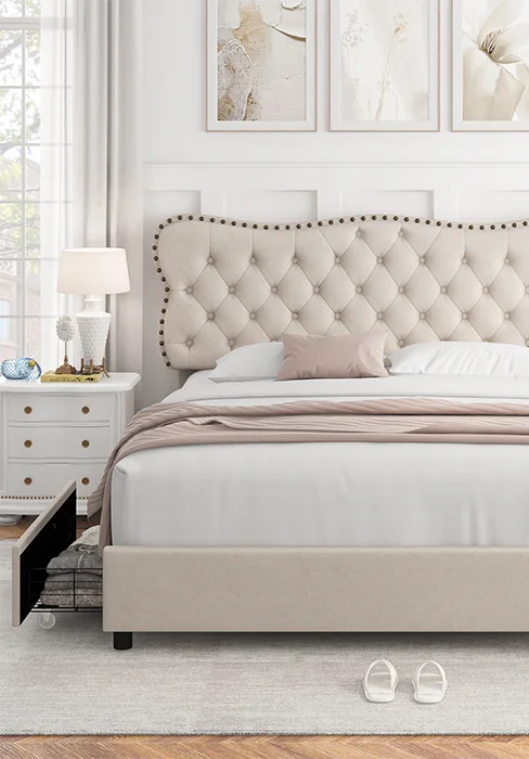 With a modern, minimalist style, our bed frame incorporates current popular elements and lively shapes, perfectly integrated into the living space.