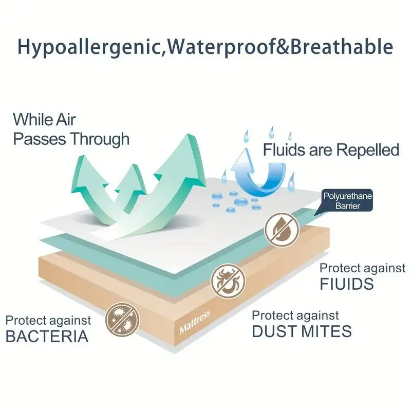 ·Waterproof fitted sheet protect your mattress,Anti Dust Mite, Air-Permeable, Anti-Bacteria, Anti-Pull, Washable.