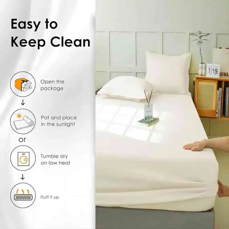 ·Elastic Cord:- The Mattress Cover easily fits to the mattress with all-around elasticity, stays securely in place,it is so easy to give a beautiful bedding.