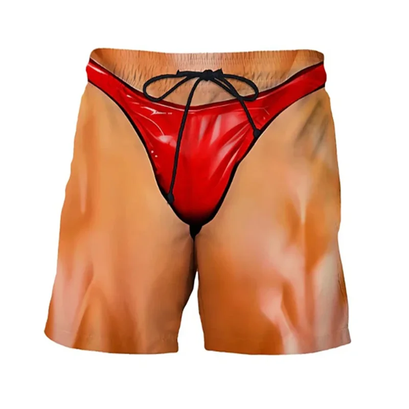 Funny Realistic Briefs Pattern Beach Shorts Fashion Trend Summer 3D Printed Swim Trunks Loose Catch Eyes Quick Dry Short Pants
