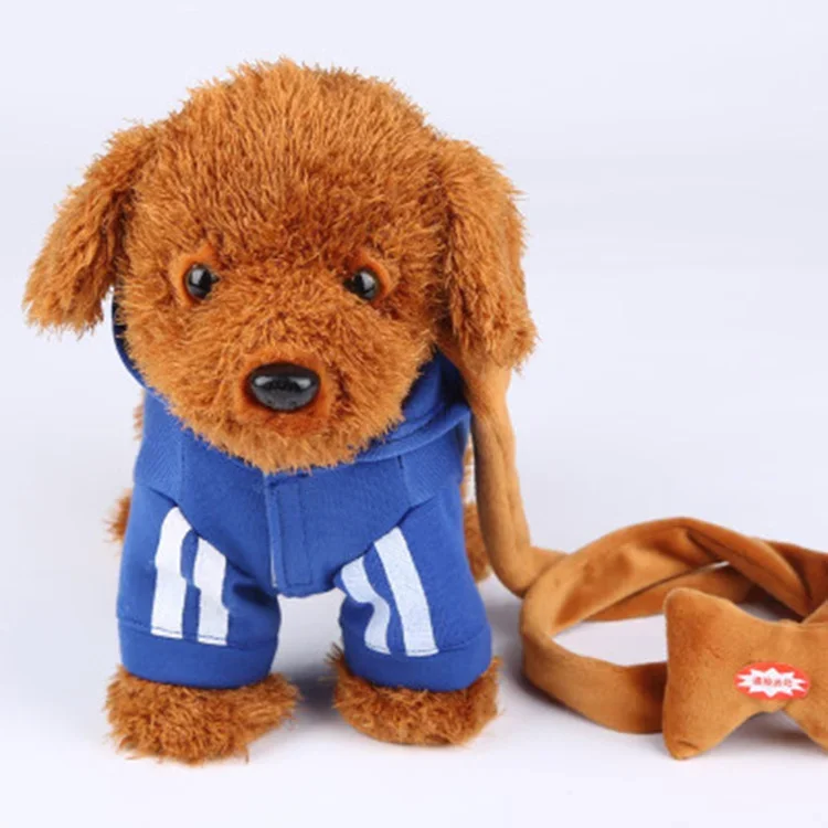 [Funny] Very cute Animal electronic pet walking music teddy dog robot plush toy traction rope dog soft sound doll kids baby gift