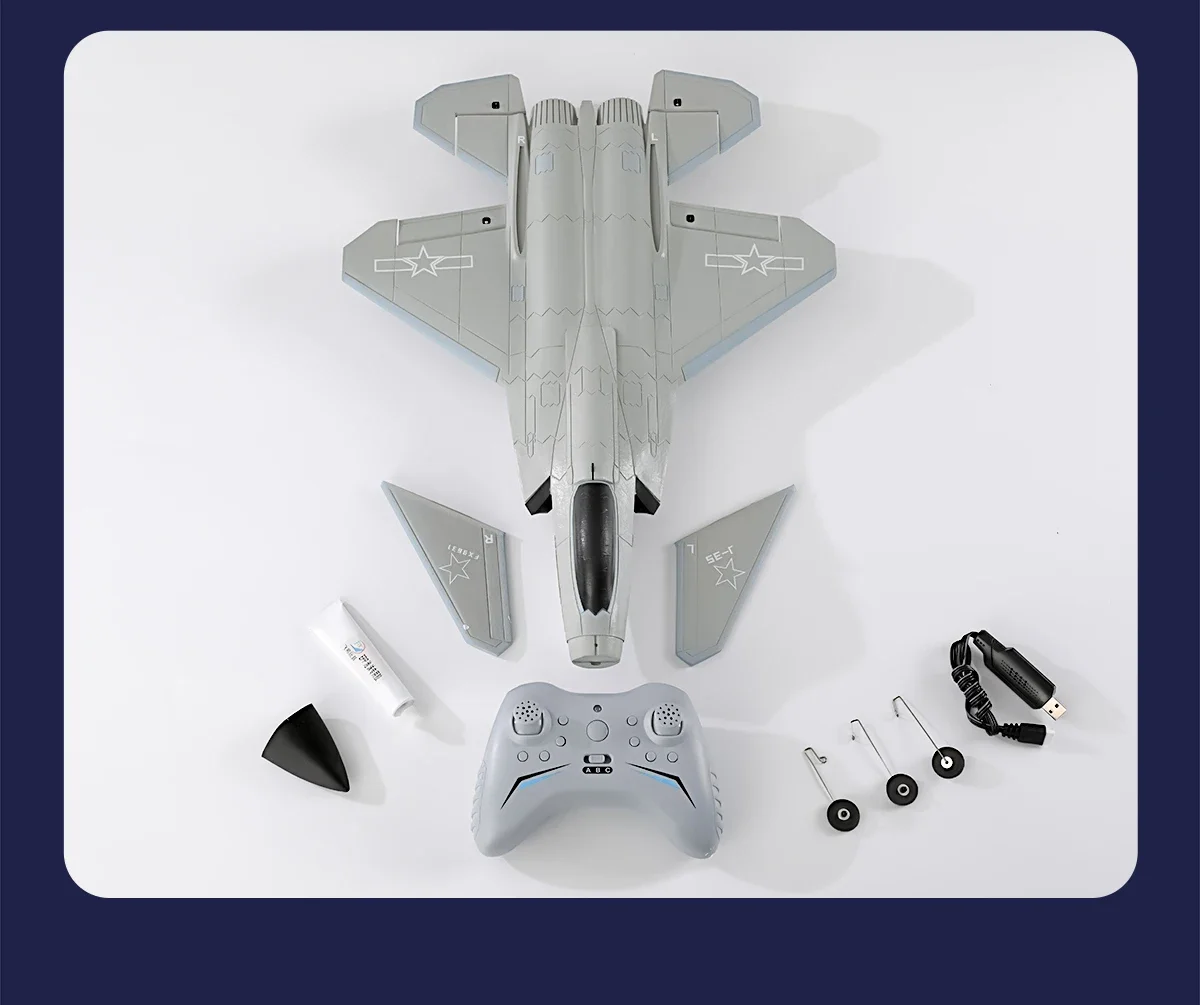 [Product Details]: 1 set of color box and inner box packaging, 1 remote control, 1 body, 1 wing, 1 manual, 1 charging cable, 1 lithium battery, 1 set of landing gear, 1 screwdriver, and 1 propeller.