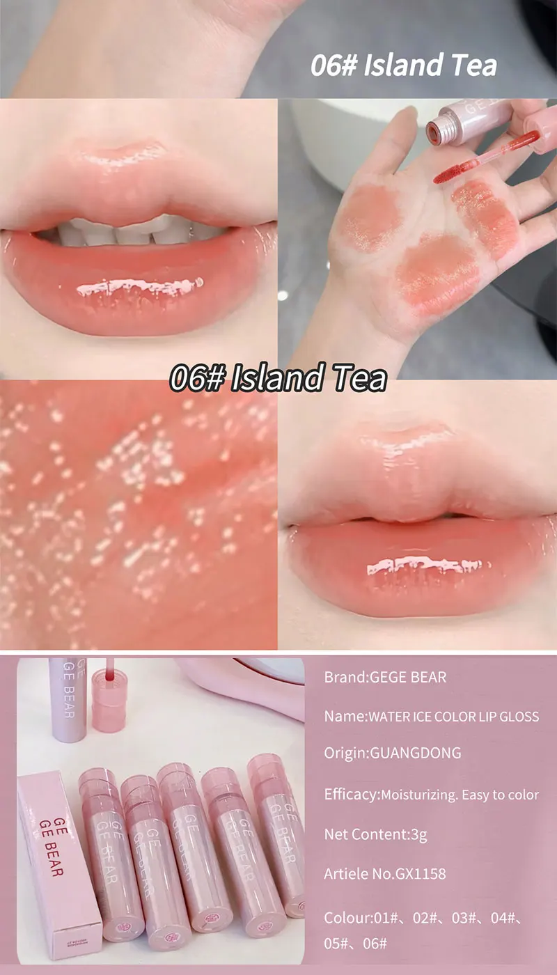 Gege Bear Gogo Little Bear Water Gel Lip Gloss — Hydrating, Crystal-Clear Finish with Long-Lasting Color for a Pure and Sexy