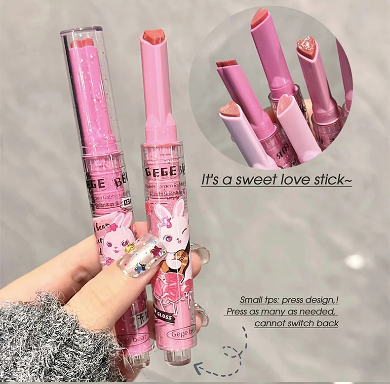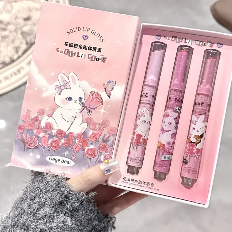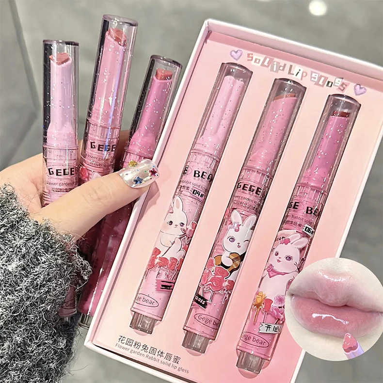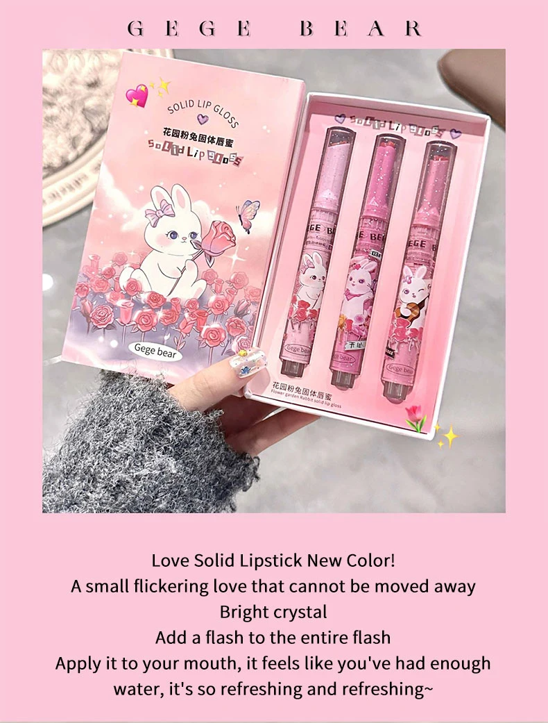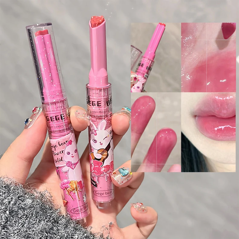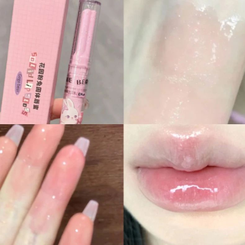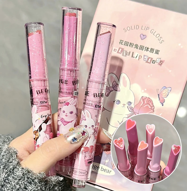Gegebear Garden Pink Bunny Solid Lip Gloss – Glossy Shine, Hydrating Formula, and Reduces Lip Lines,Summer never wears off makeu