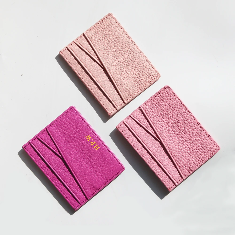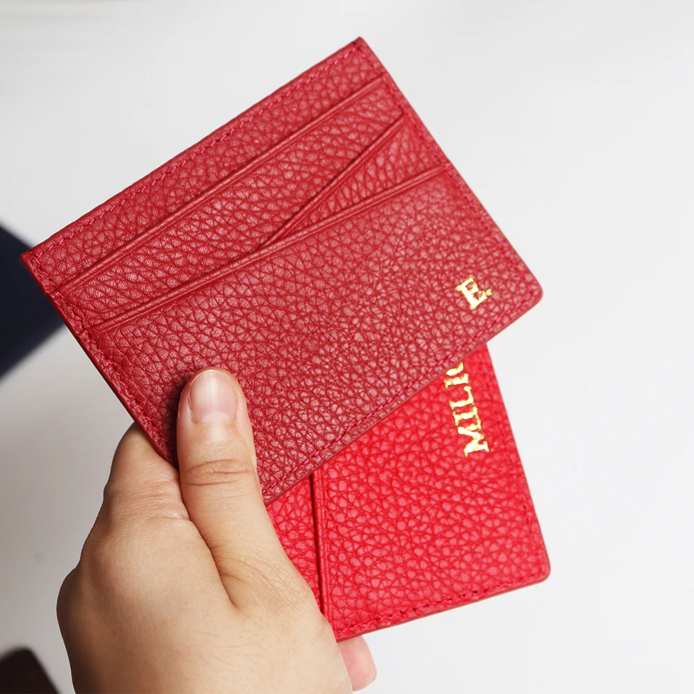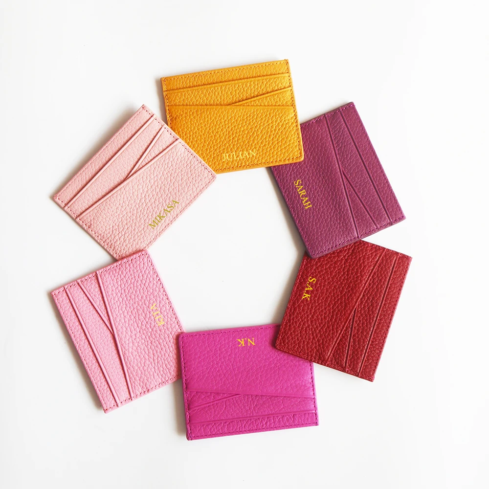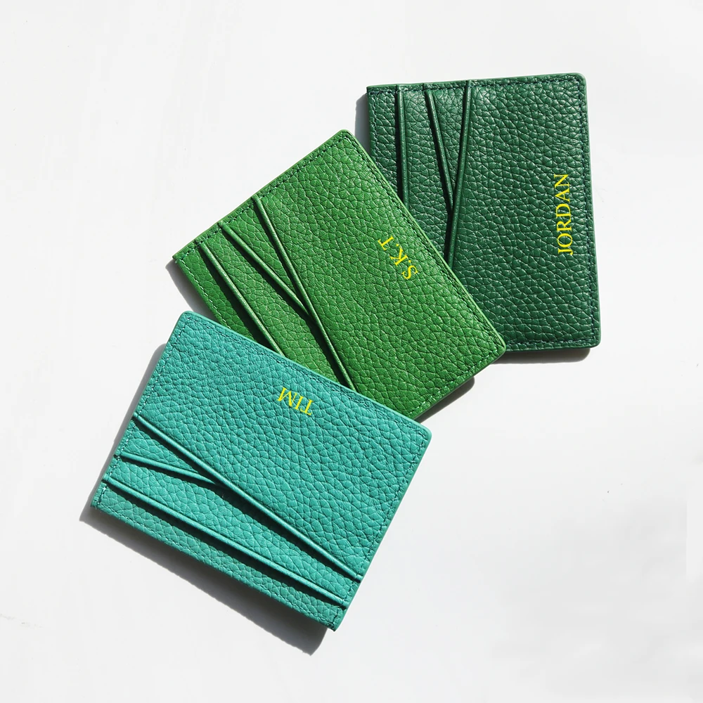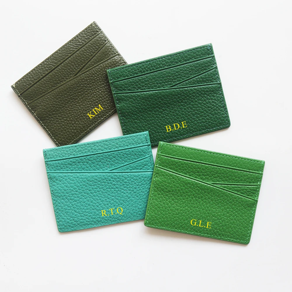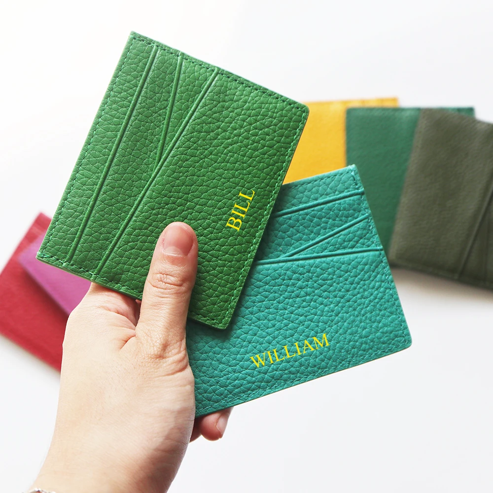Genuine Leather Card Holder Woman Custom Name Designer Wallet Slim Luxury Card Wallet Man Engrave Initials Business Coin Purse