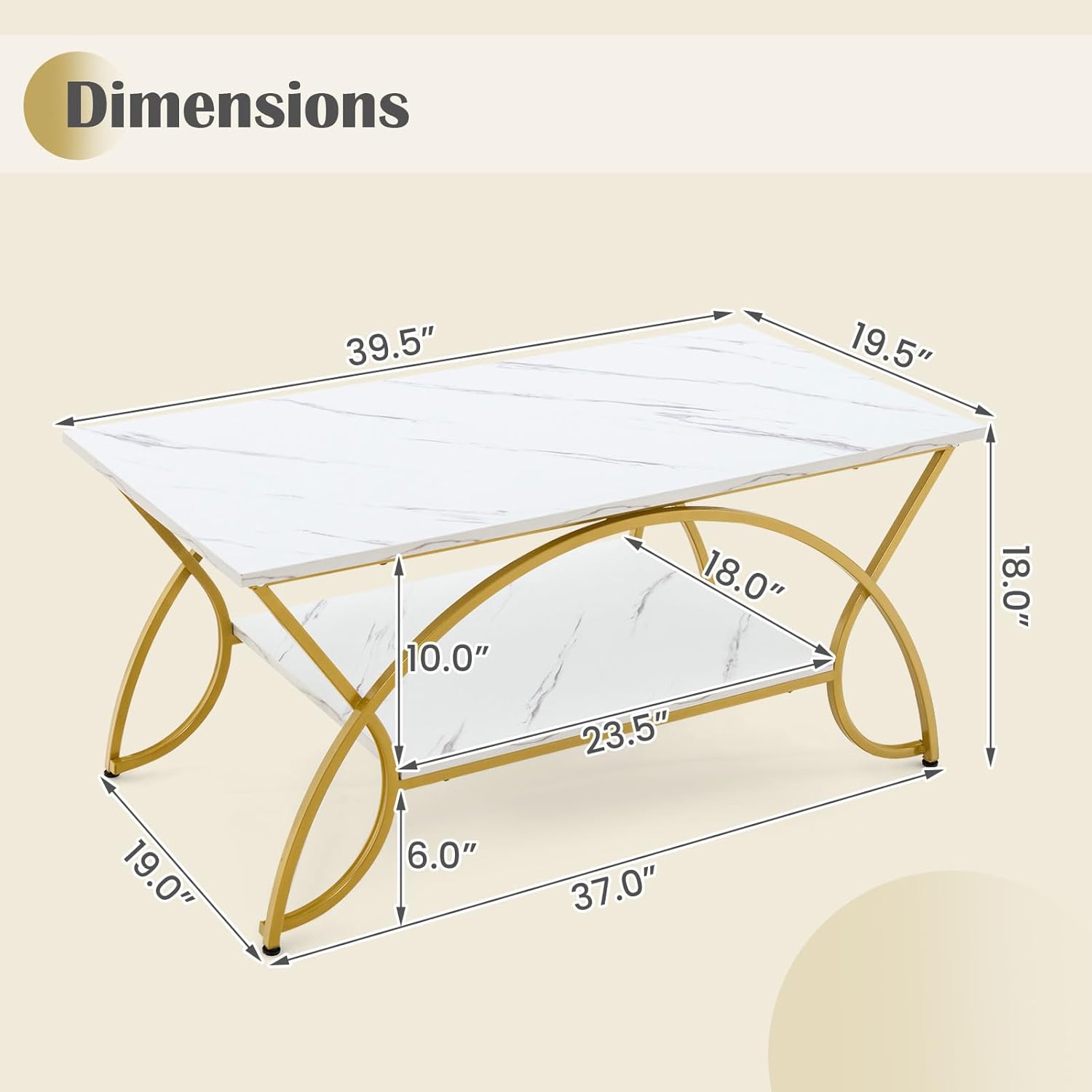 [ Elegant & Chic Appearance ]: Featuring A Tabletop With White Faux Marble Texture Finishing, This 2-Tier Living Room Coffee Table Will Add A Touch Of Elegance To Your Home. Besides, The Curved Legs With Gold Finish Create A Stylish And Luxurious Feel, Which Can Ly Brighten Up Your Living Area.