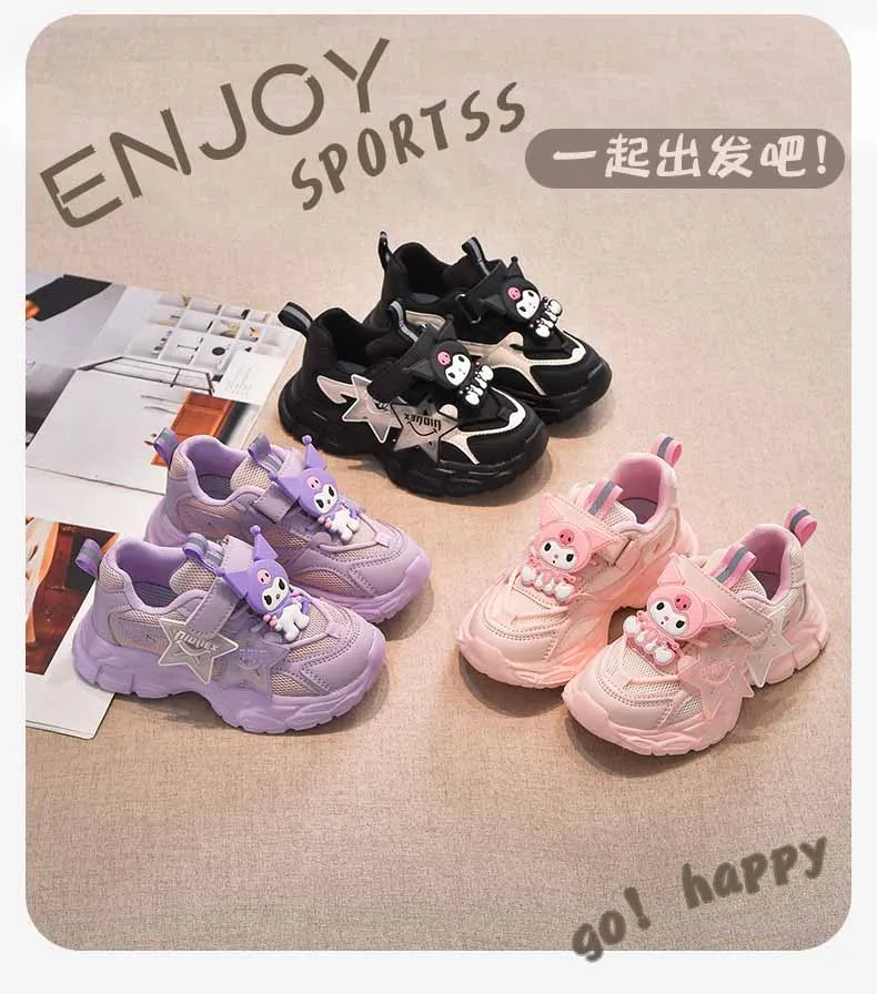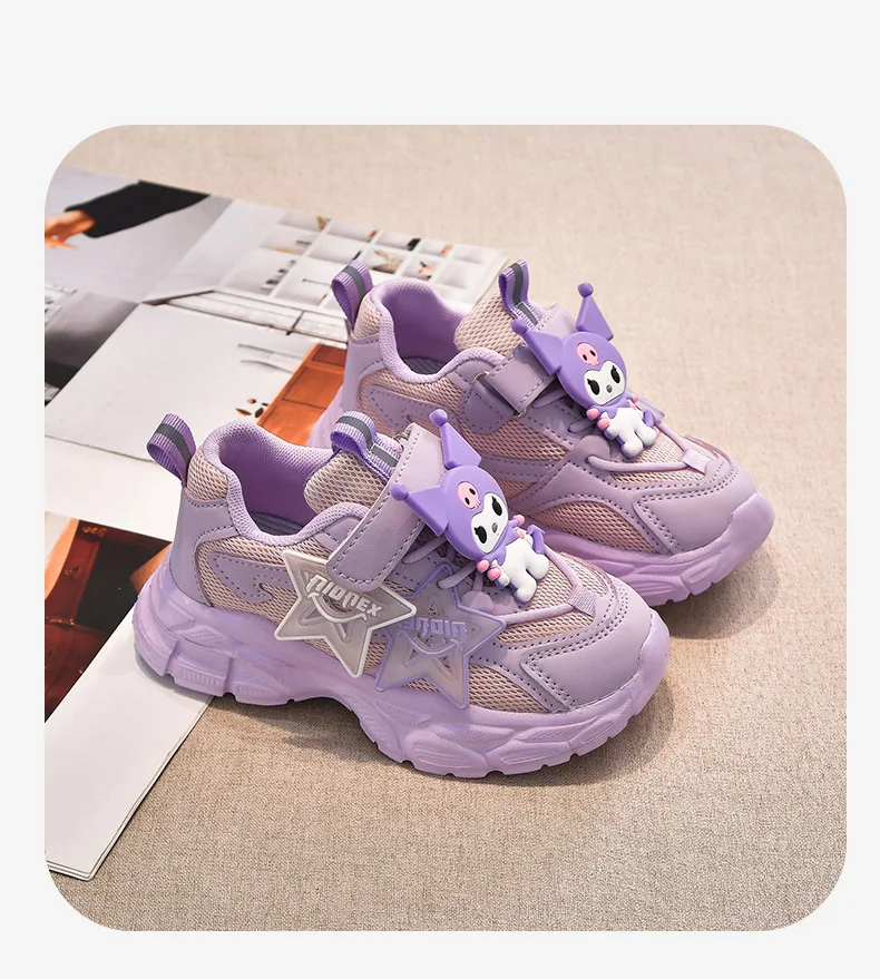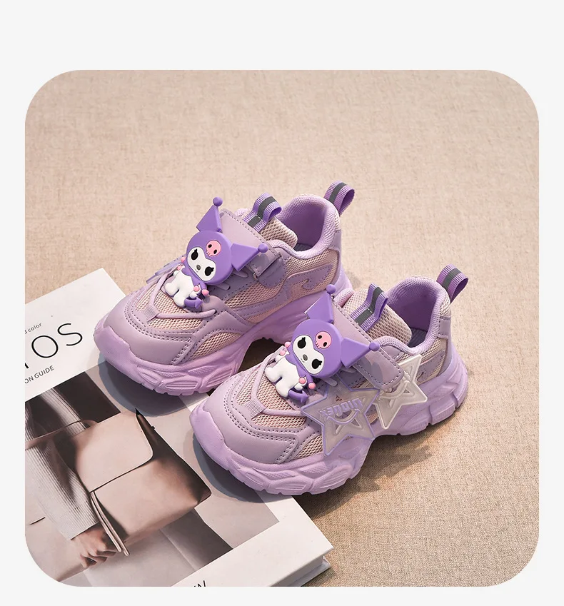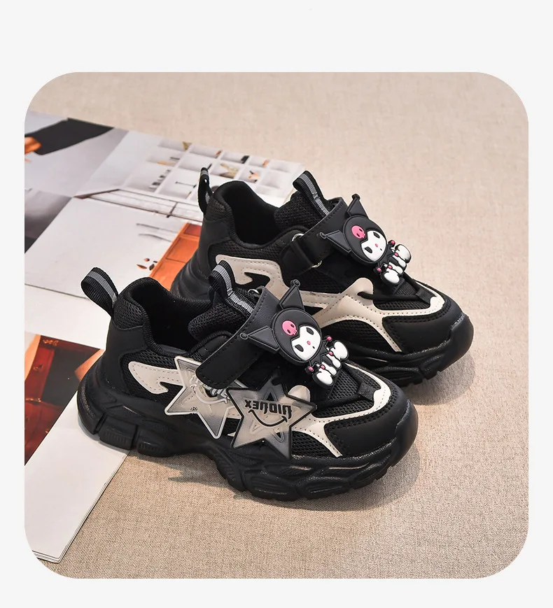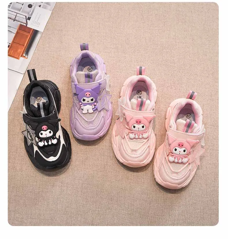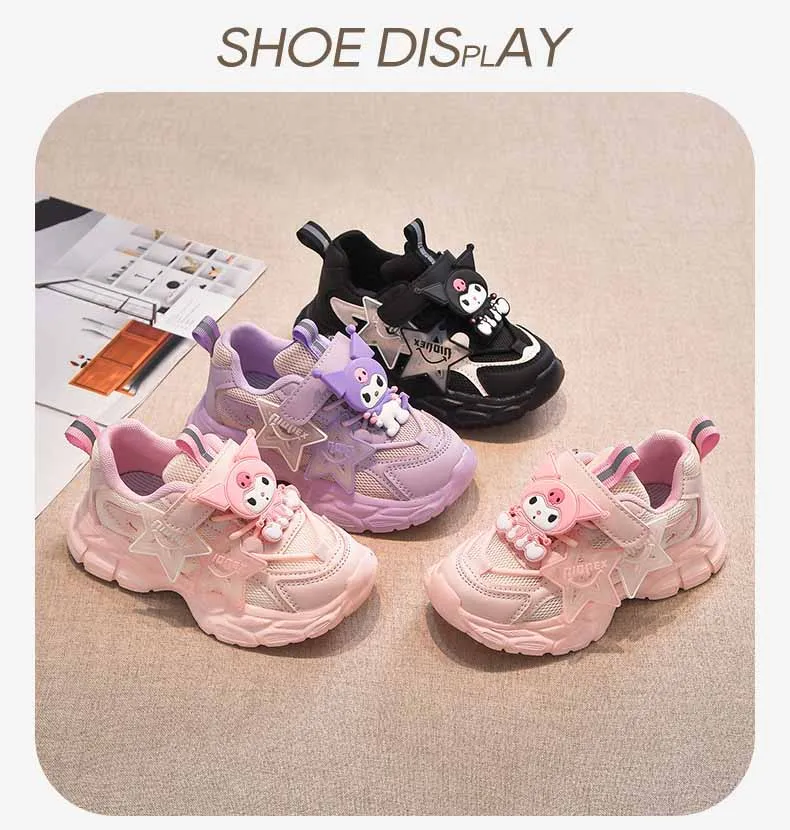 Girls’ Cute Cartoon Kuromi Sports Shoes Spring and Autumn New Anti Slip Thick Soled Mesh Casual Sneakers Outdoor Running Shoes