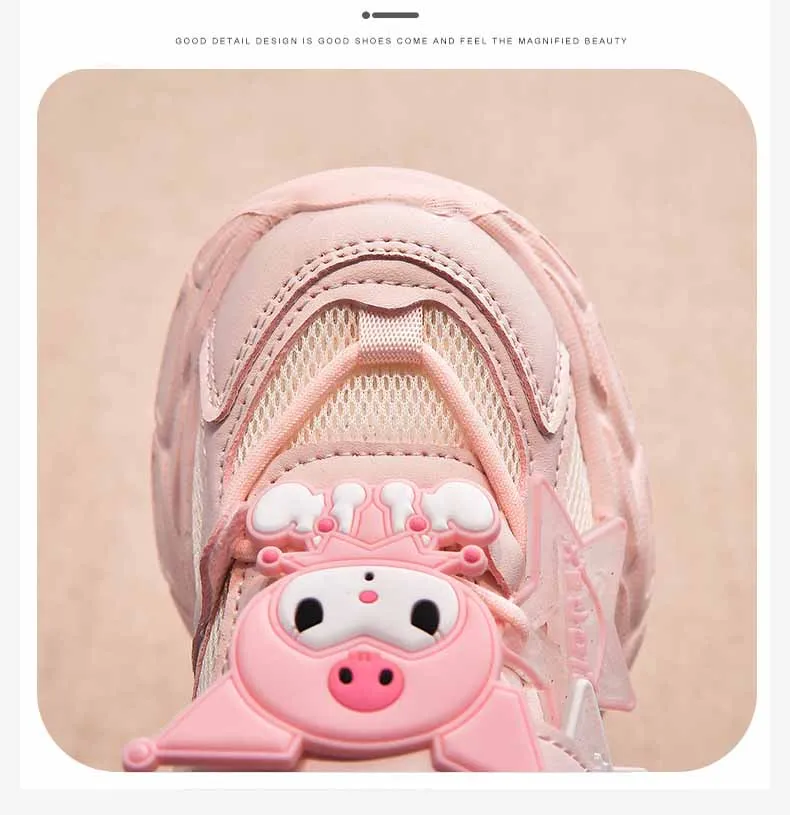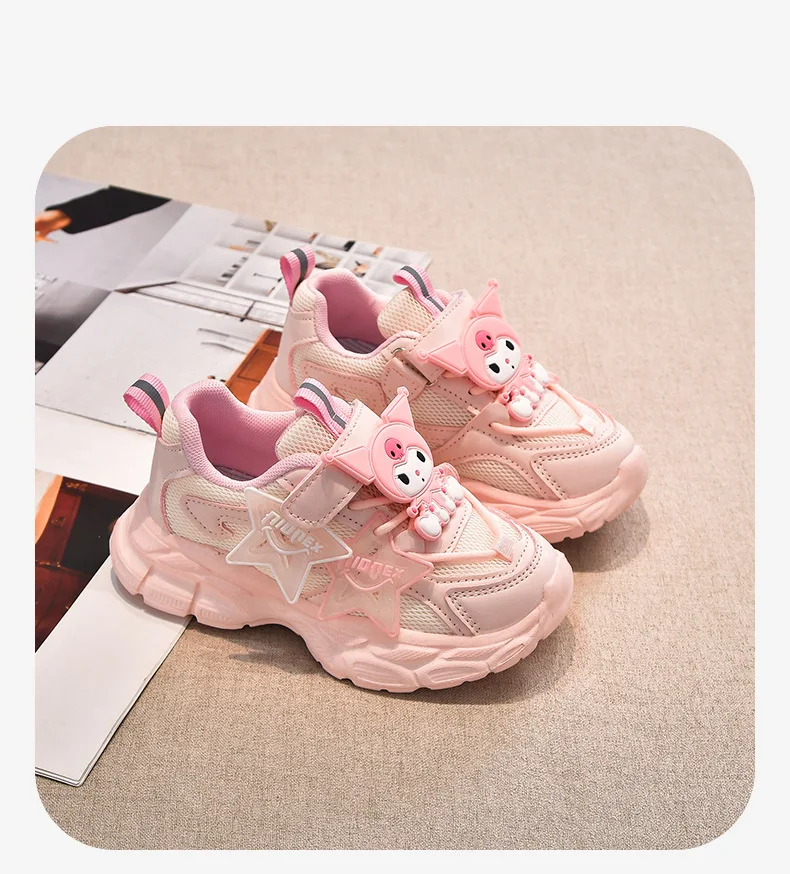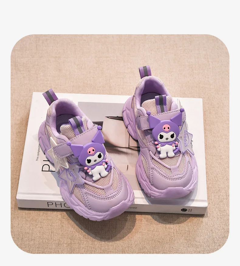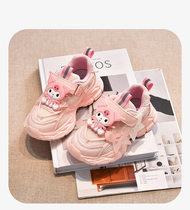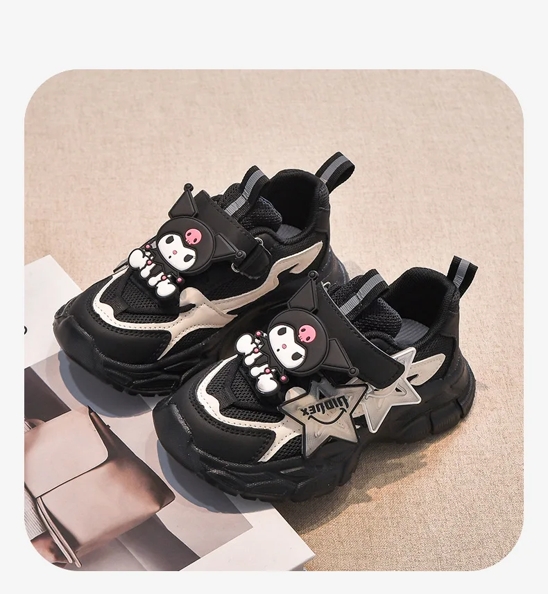 Girls’ Cute Cartoon Kuromi Sports Shoes Spring and Autumn New Anti Slip Thick Soled Mesh Casual Sneakers Outdoor Running Shoes