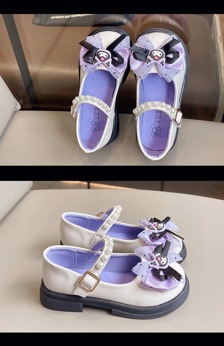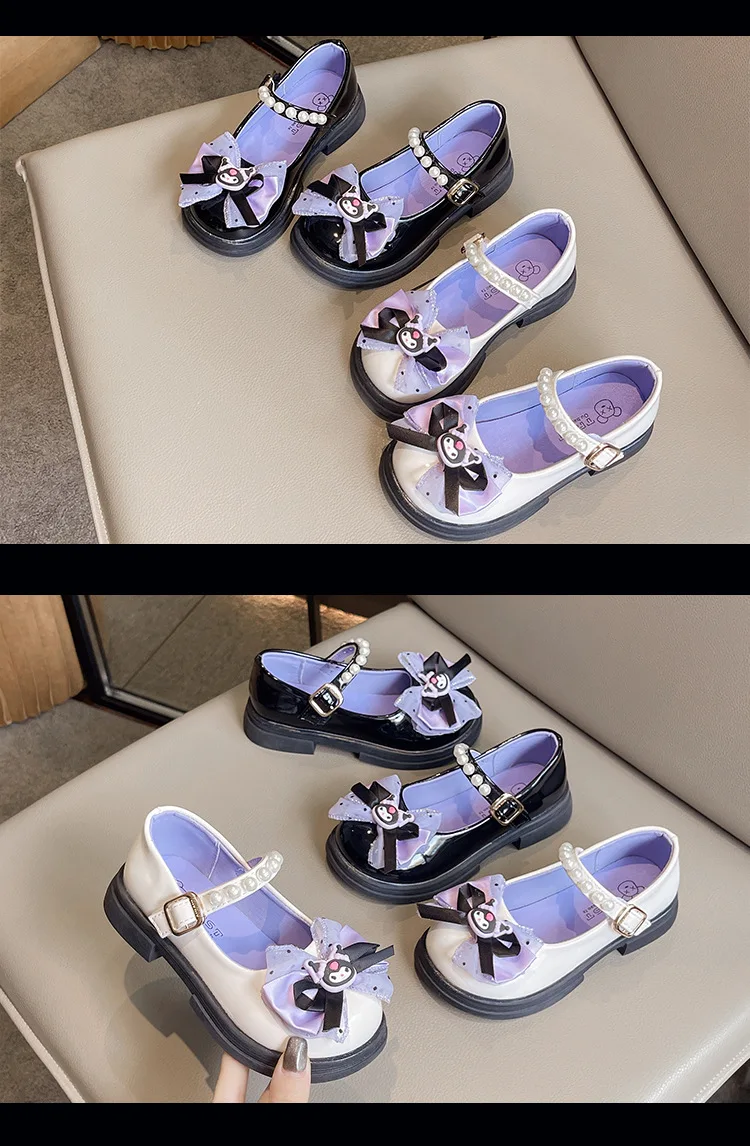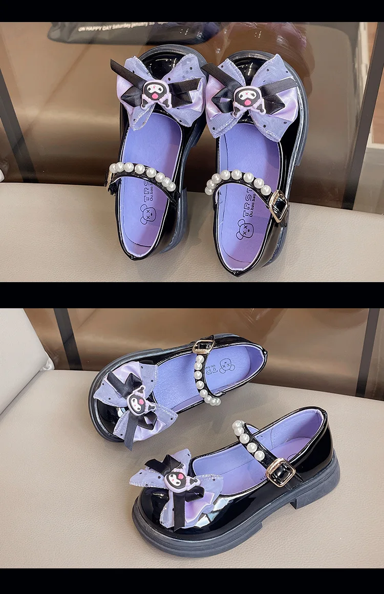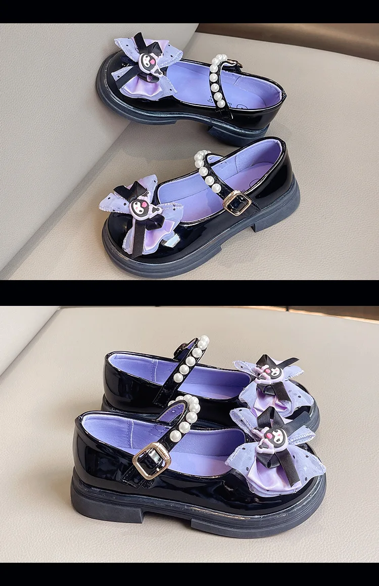 Girls Leather Shoes Fashion Princess Kids Mary Janes Children Casual Flats Cartoon Kuromi Lace with Bow-knot Sweet Cosplay 26-36