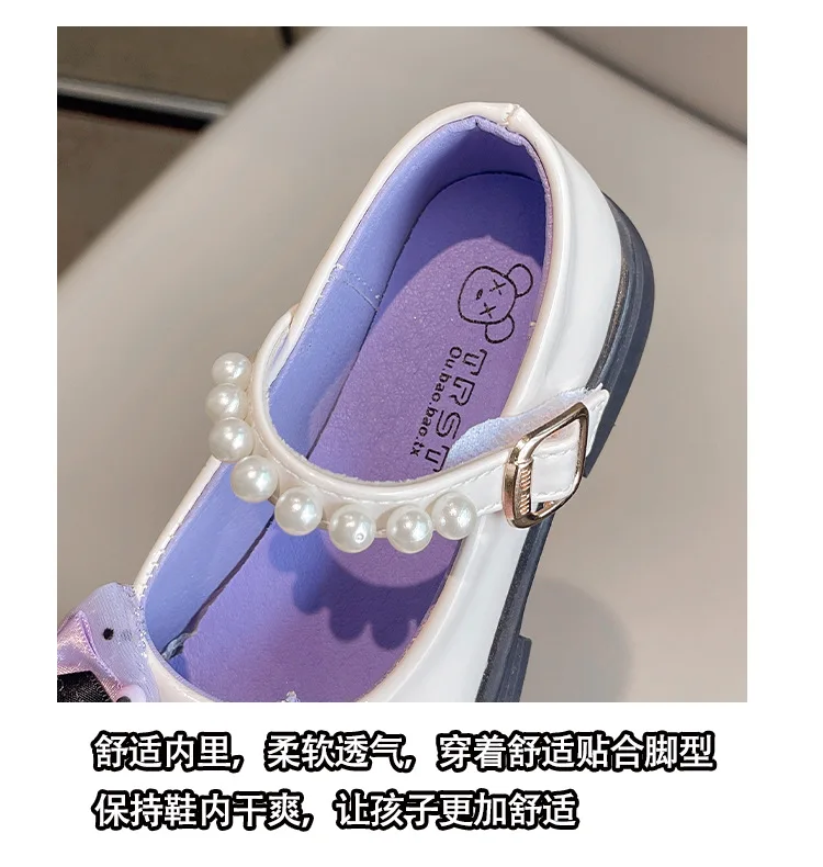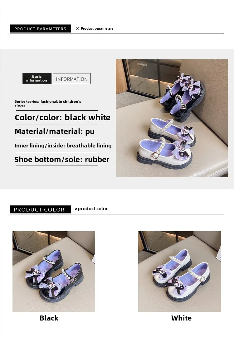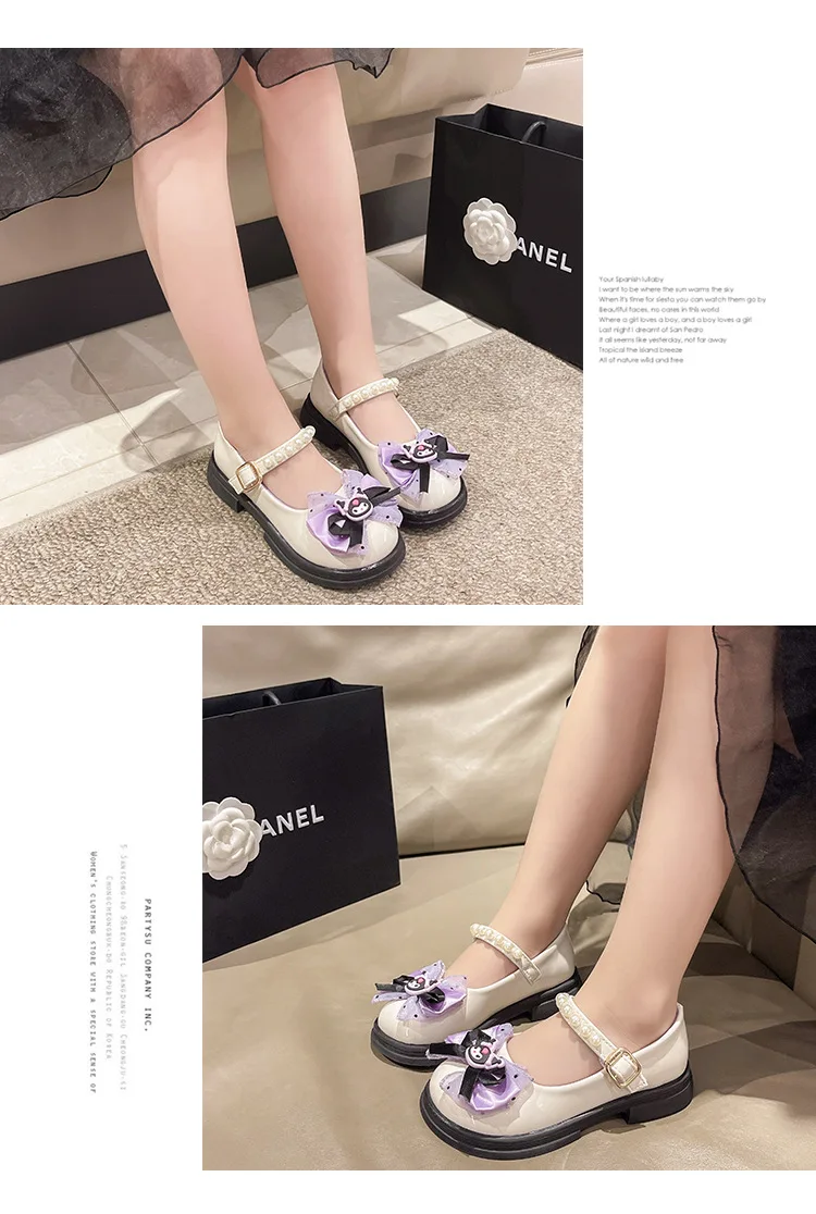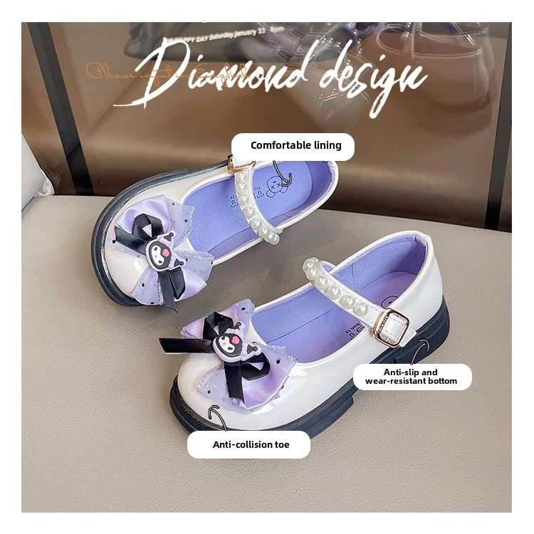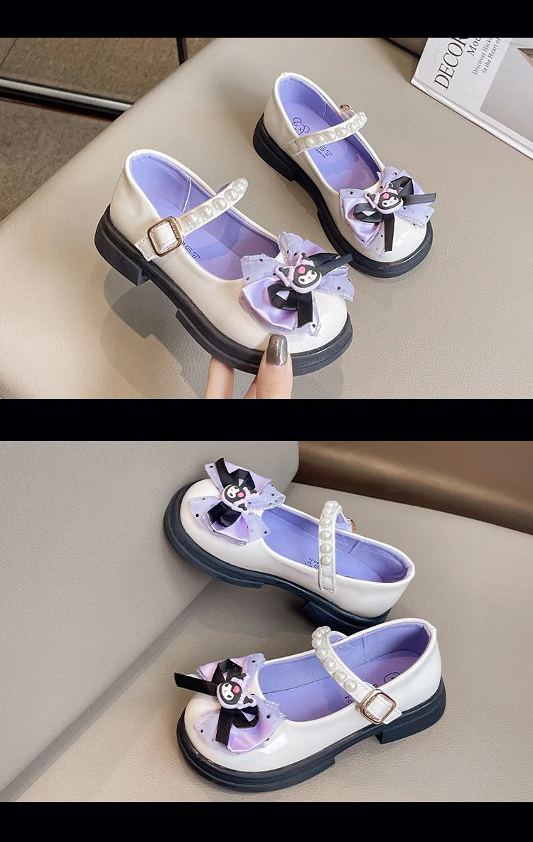 Girls Leather Shoes Fashion Princess Kids Mary Janes Children Casual Flats Cartoon Kuromi Lace with Bow-knot Sweet Cosplay 26-36