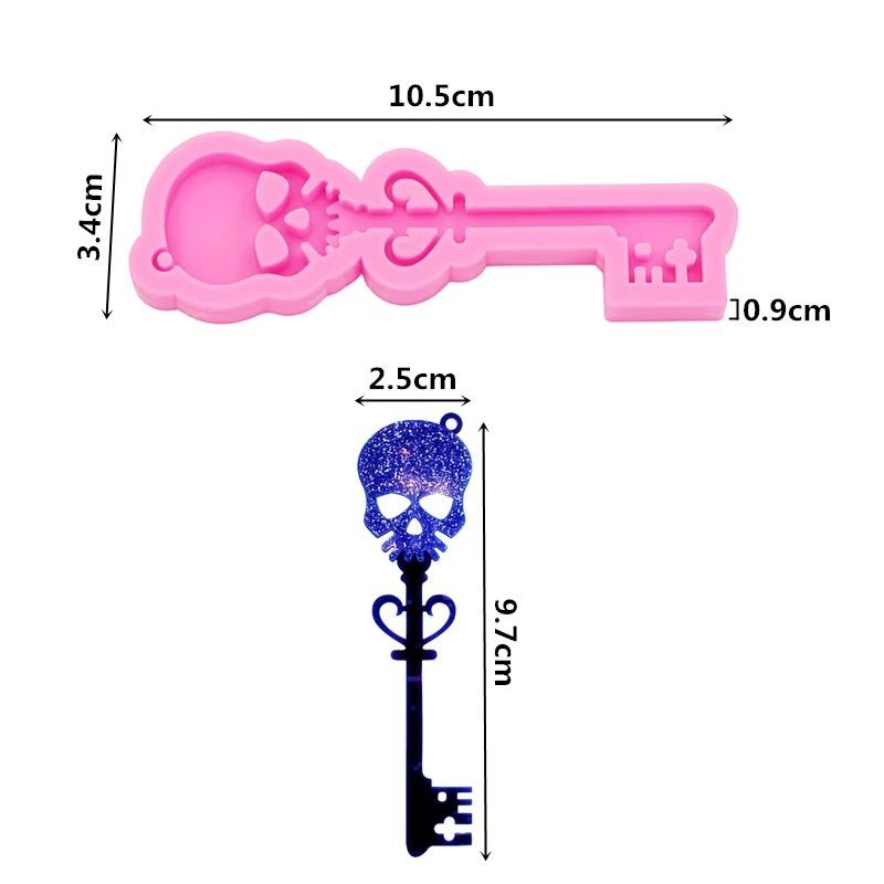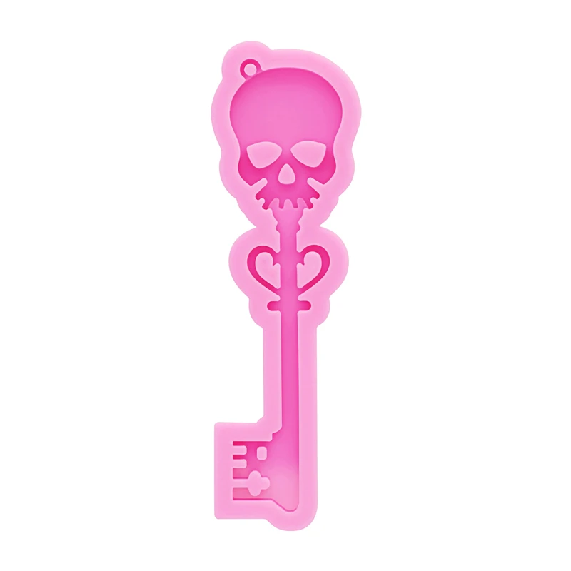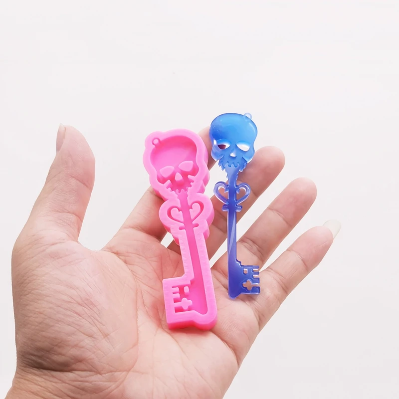 GJ-988 Shiny Mirror Skull Key Epoxy Resin Drip Mold DIY Earrings Pendant Keychain Bag Jewelry Pendant Silicone Molds