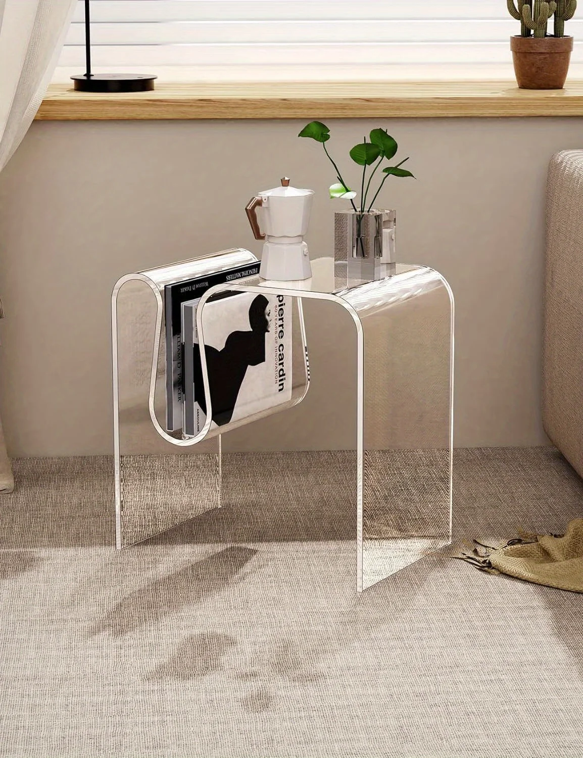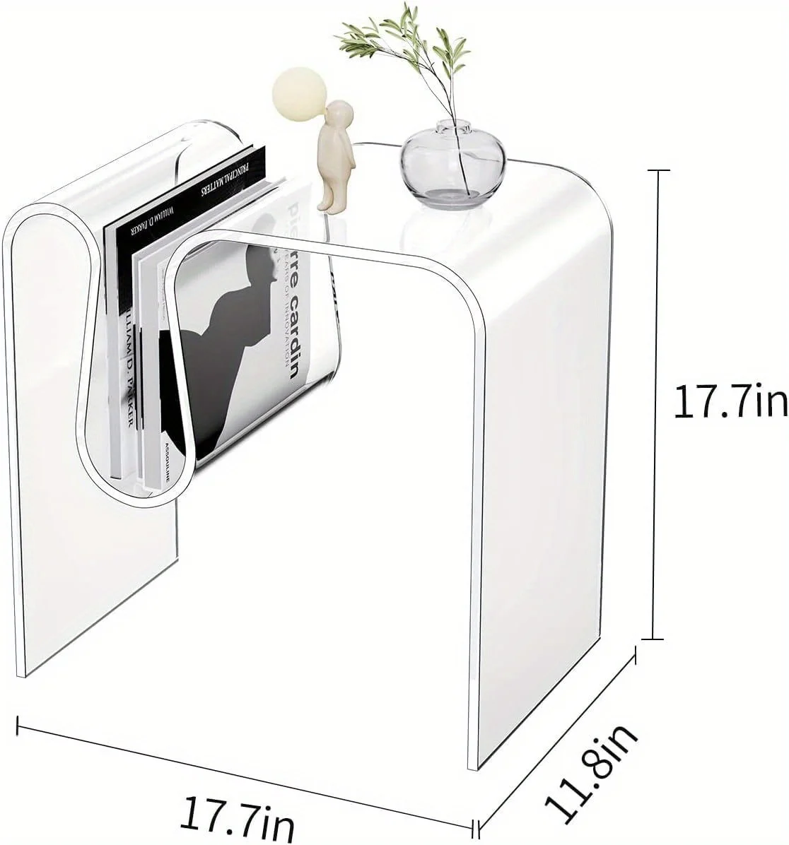 Glam Acrylic Side Table – Water-Resistant, Pedestal Base, M-Shaped, Multi-use as Small Coffee Table- Stylish & Modern Furniture
